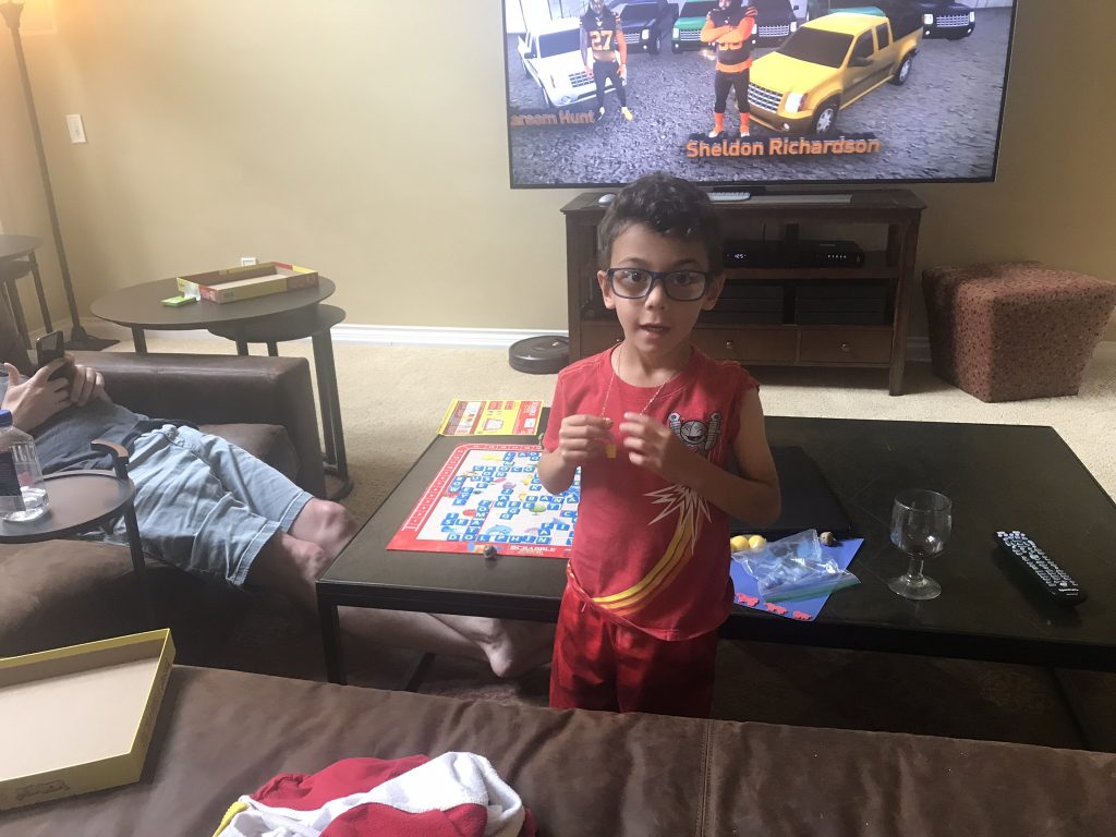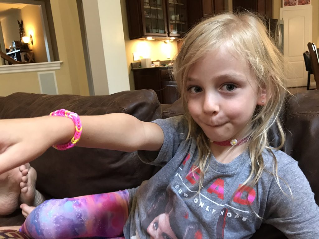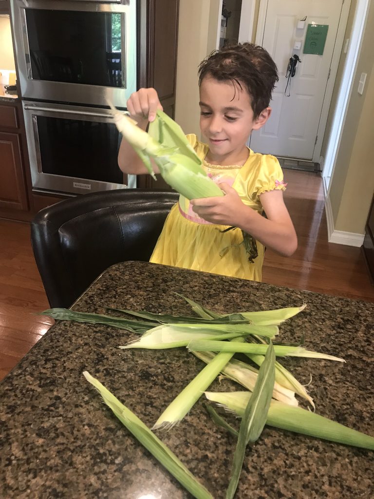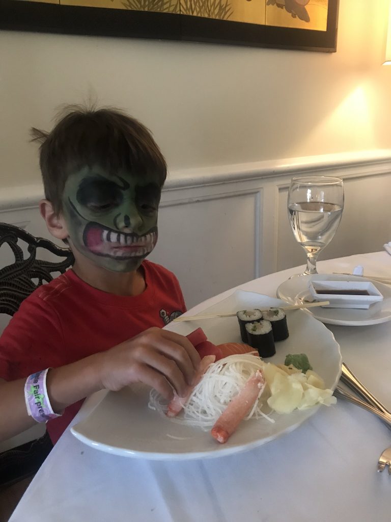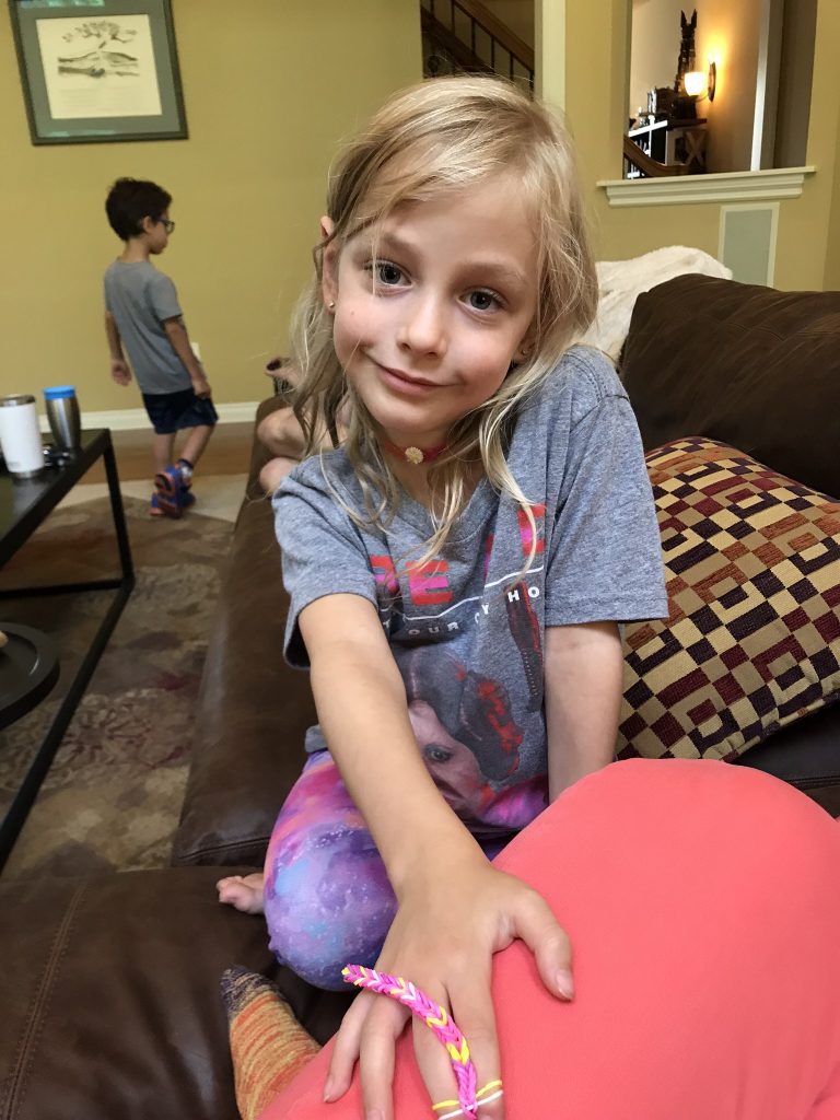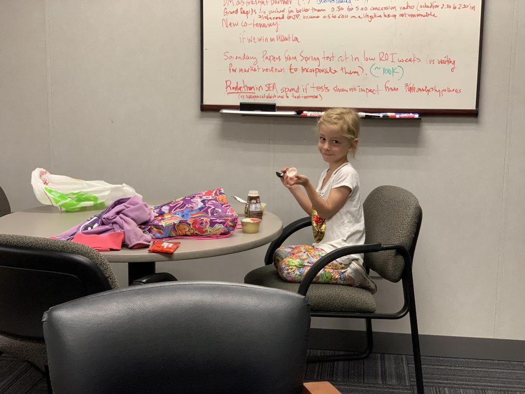 We wrapped up the day with a late dinner at Chili’s, at Steven’s request. We made it through with just four trips to the bathroom. Sometimes I’m amazed at what these kids can put back. Sammy at 2 kids cheeseburgers, an ear of corn, one of Amaya’s chicken tenders and a serving of mandarin oranges. Plus milk! I wonder if a growth spurt is coming.