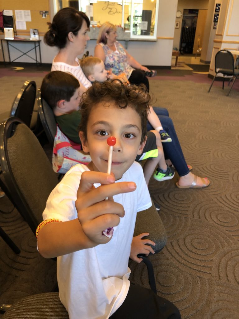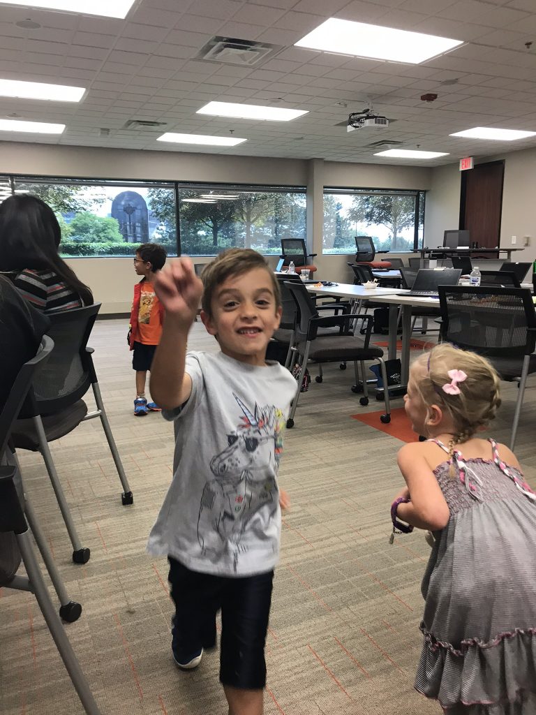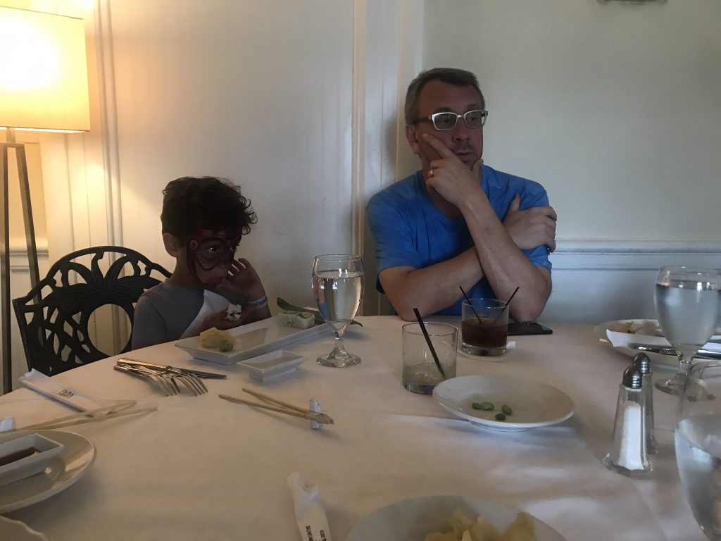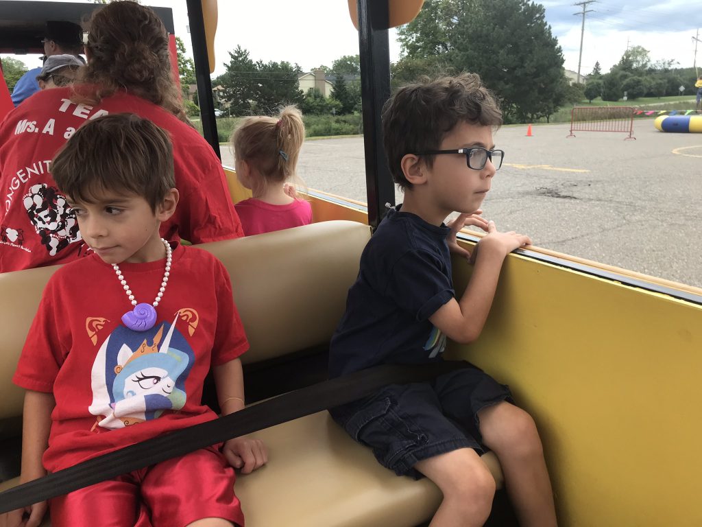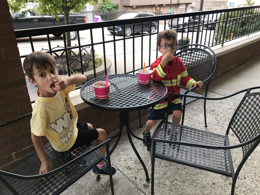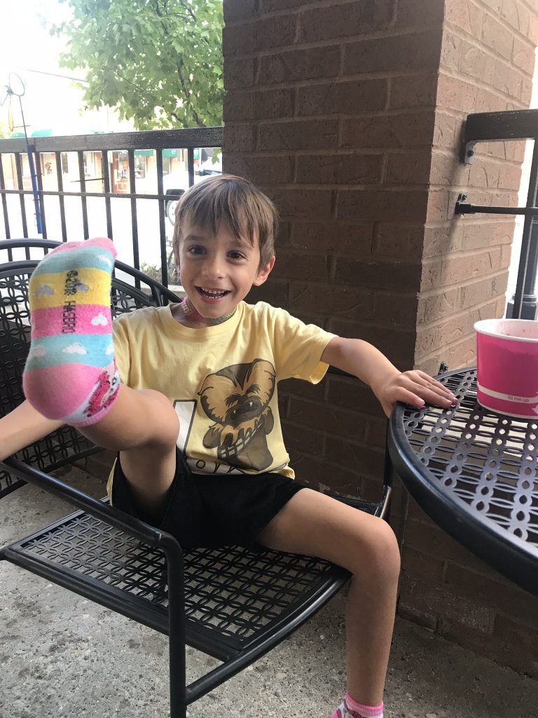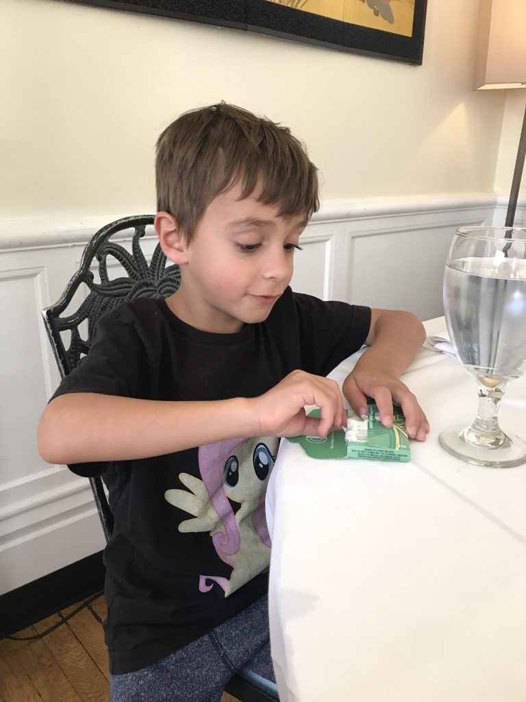 We’d suggested collared Under Amour shirts for the boys which was fine with Steven but Sammy thought it was “plain and boring” and went for his t-shirt with a balloon animal dog. And then Steven got breakfast food all over his UA shirt and ended up in his brother’s size-bigger shirt. Good thing it was available for him!