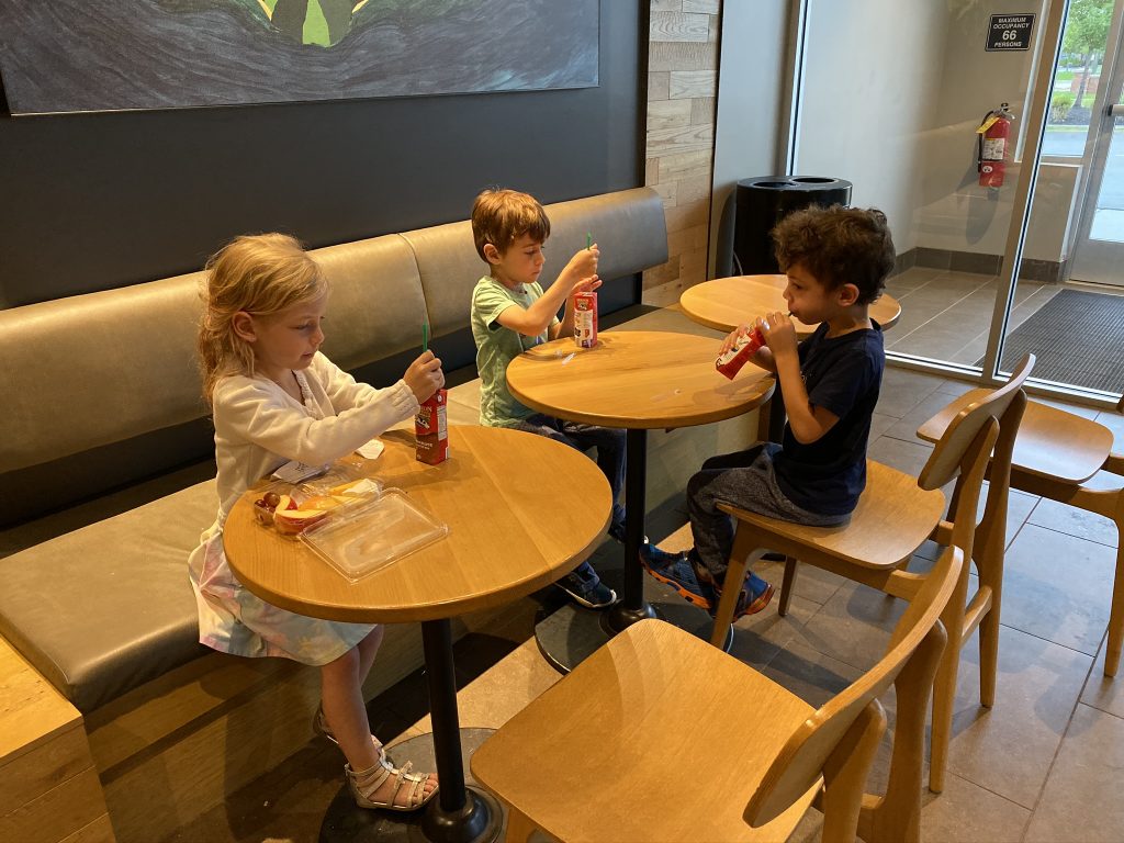 To get the kids out of the house for haircuts I bribed them with a trip to Starbucks for breakfast.