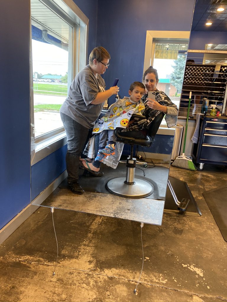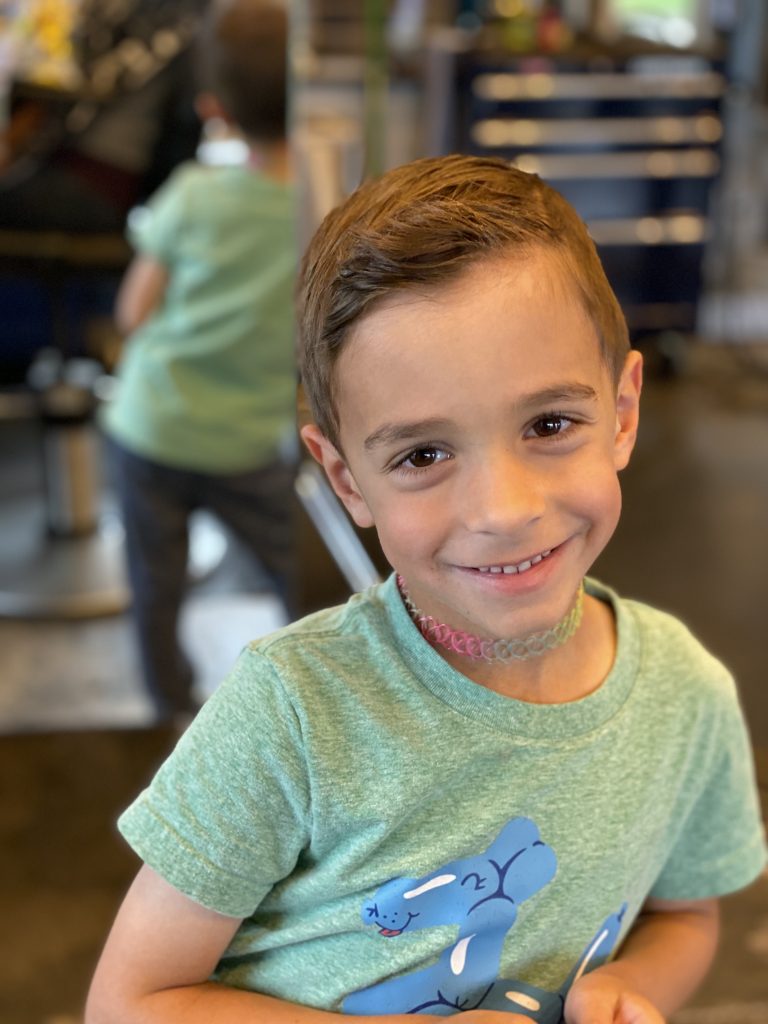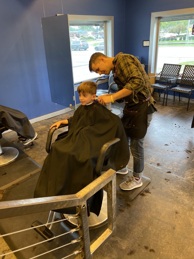 It was our first trip to a real barbershop. The kids place doesn’t do a great job so it was time for an upgrade (which, incredibly, doesn’t even cost more). Both boys were pretty nervous to try a new place. Steven was supposed to be up first but he panicked so Sammy climbed in the seat and did an awesome job. He was very clear that he wanted his hair to be very short with no bangs on his face.