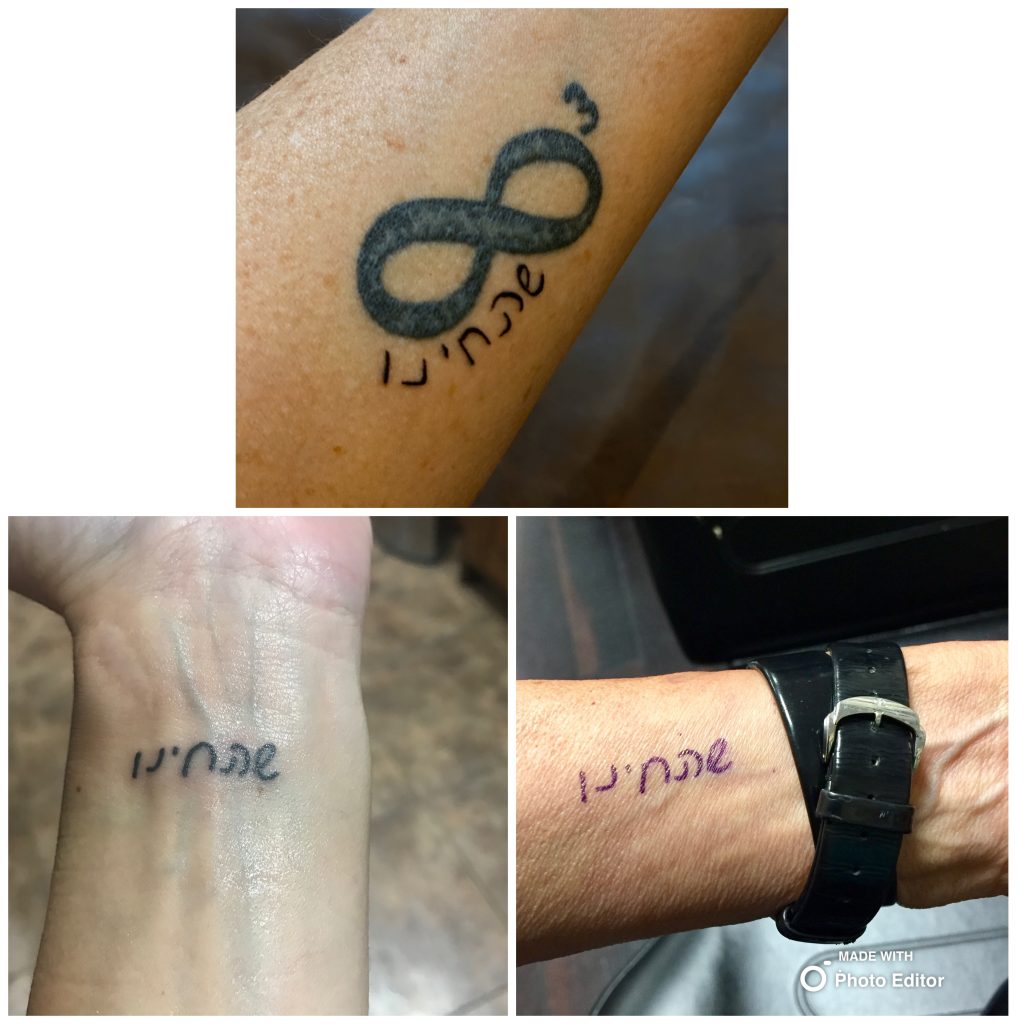As of Saturday, my mom, sister and I are tattoo triplets! My mom got this “shehecheyanu” tattoo about a year ago and Sara and I joined her this weekend. In my mom’s words: “To me, this is a reminder to be mindful we are alive and to look for those times – big or small, special occasions or ordinary moments – that make us grateful for our lives and the people in them.” <3