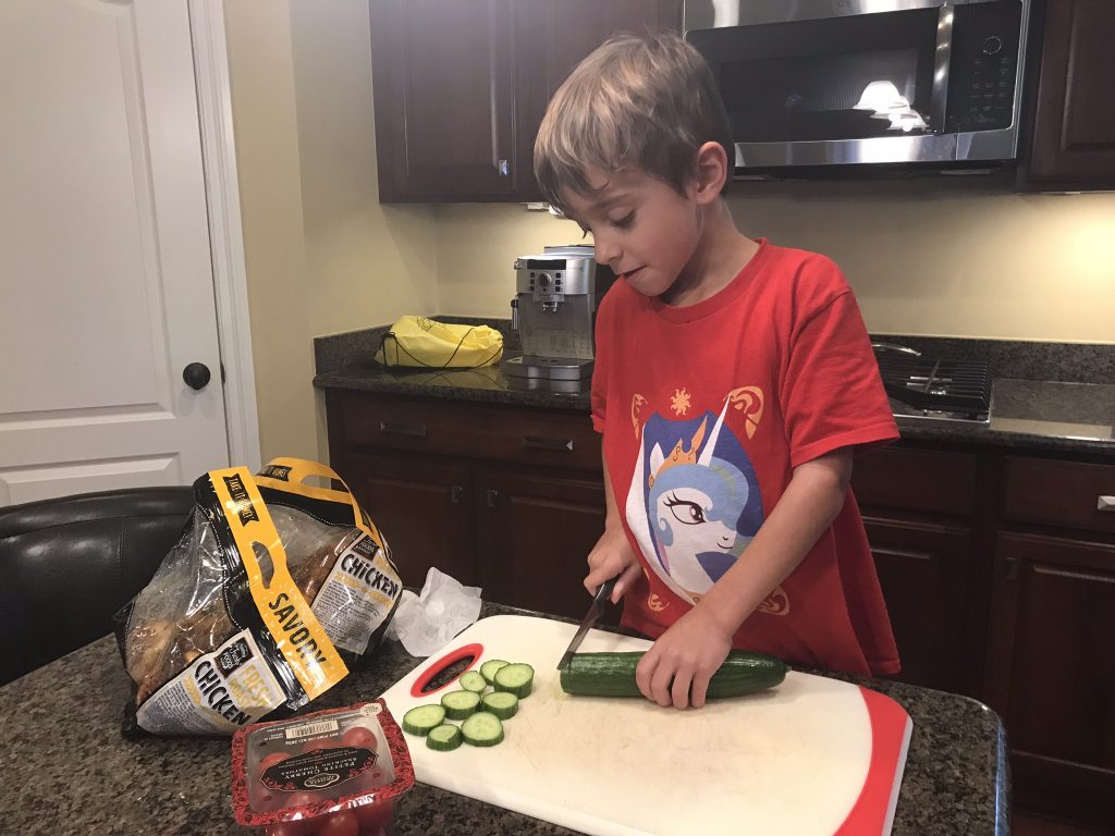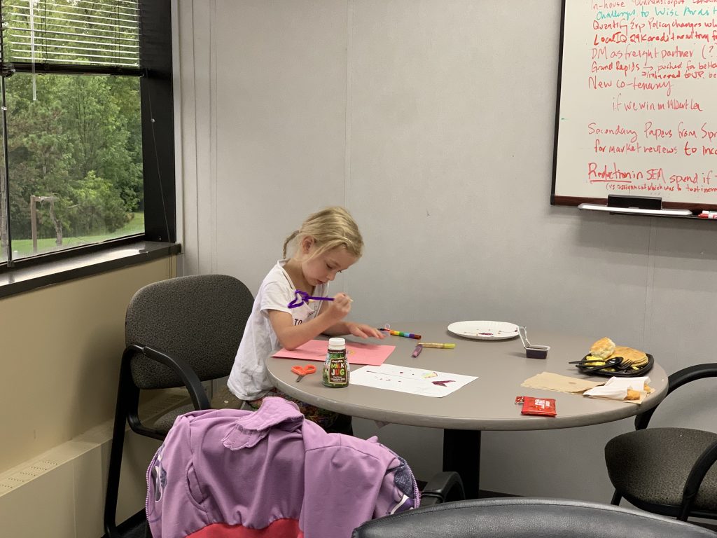 I had a golf outing for work on Tuesday which worked out perfectly because the kindergarten classes needed parent volunteers to cut paper for an alphabet project. I volunteered with another mom from Steven & Sammy’s class (who, by chance, I met the weekend before at a birthday party for a pre-k friend). I’m so grateful to work so close to their school and have flexibility in my schedule. I really want to get there for volunteer opportunities and events as often as possible.