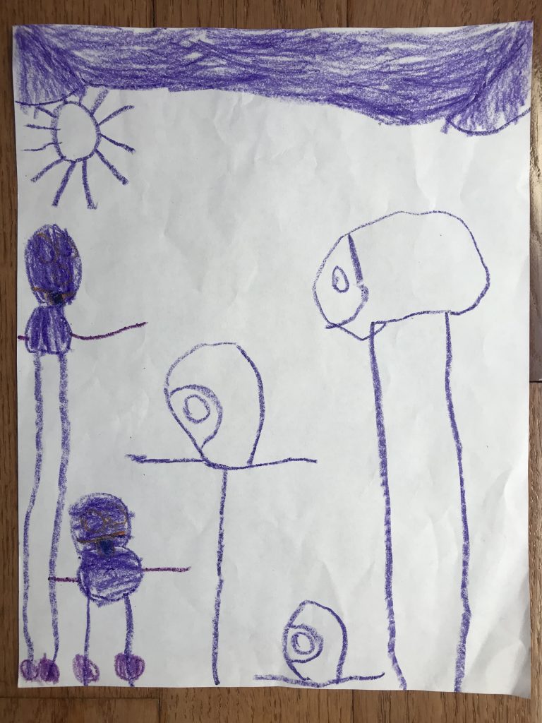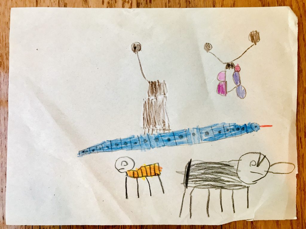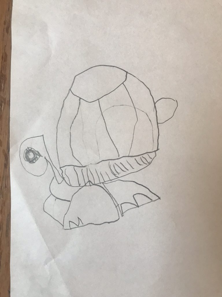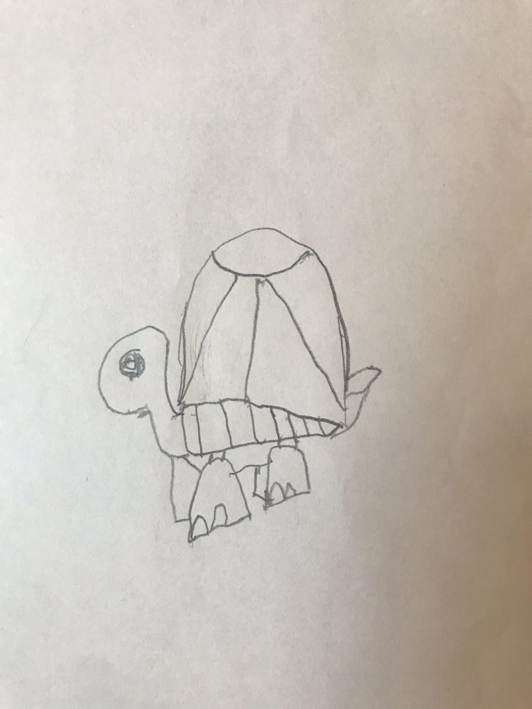 Steven drew a horse, a butterfly, his snake Rattle Spot, a tiger and an elephant.