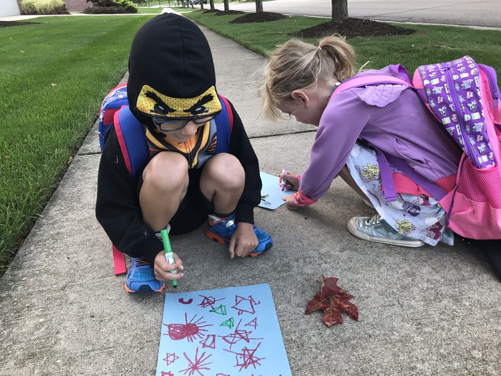 SSA have started coloring in the morning while we wait at the bus stop. It works as long as they stop as soon as we see the bus coming. So far, so good.