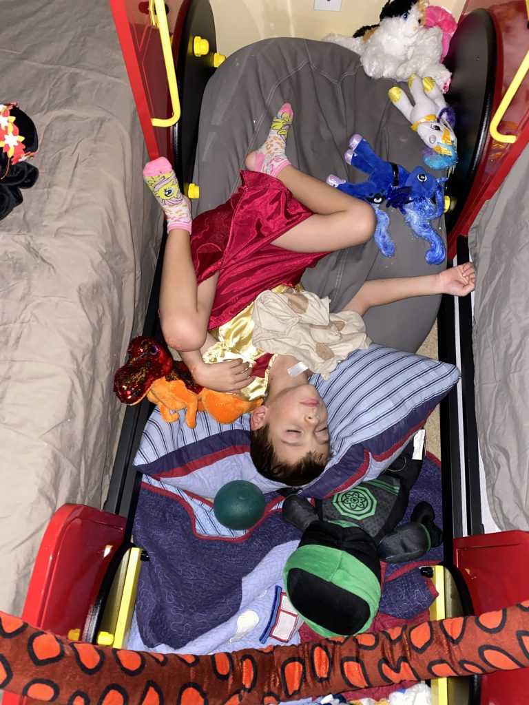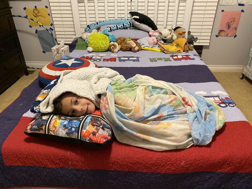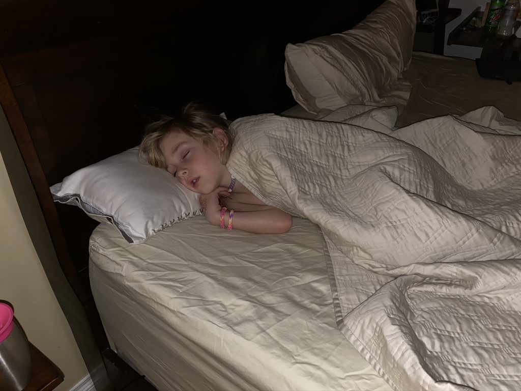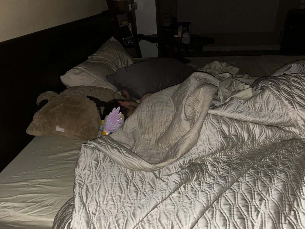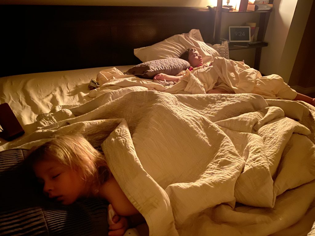 I’m not sure how it happened, but Jason offered to let Amaya and Steven sleep with him for the night. Sammy was already asleep but I didn’t want Sammy to feel left out when he woke so I suggested I’d take him to sleep with me. After Steven’s small response of, “Wait? Sammy’s going to sleep with you?”, Sammy and Amaya ended up with Jason and Steven climbed in with me. In the morning, Sammy’s biggest concern was whether or not he’d still get a staying-in-bed star. (He did, of course.)