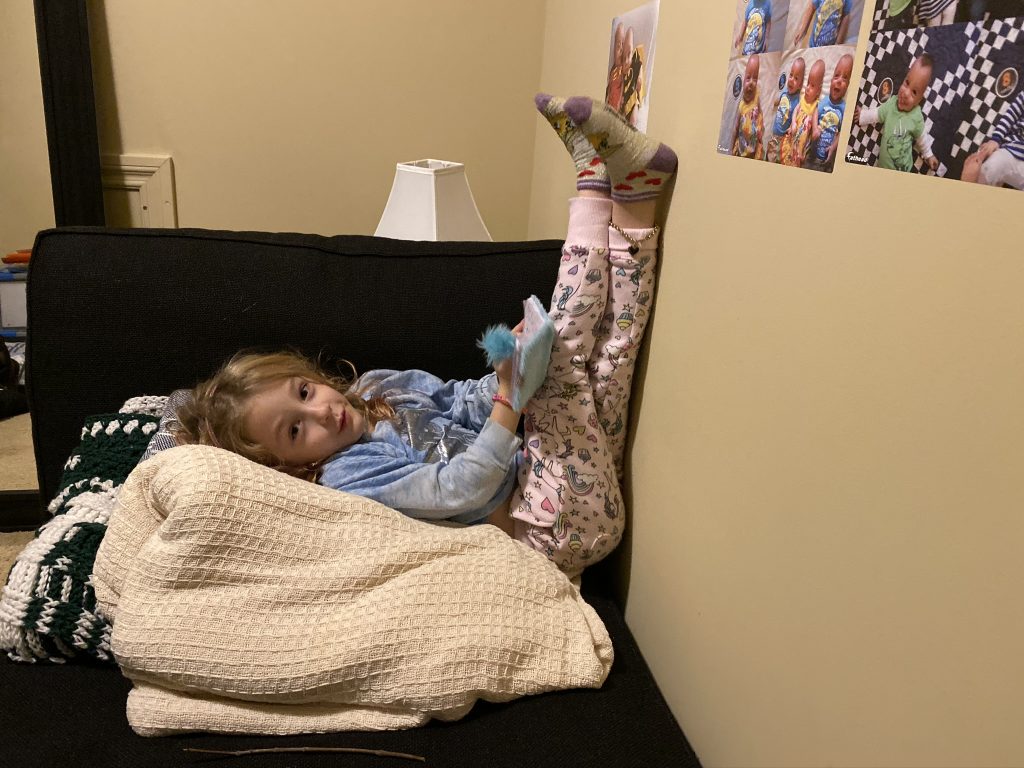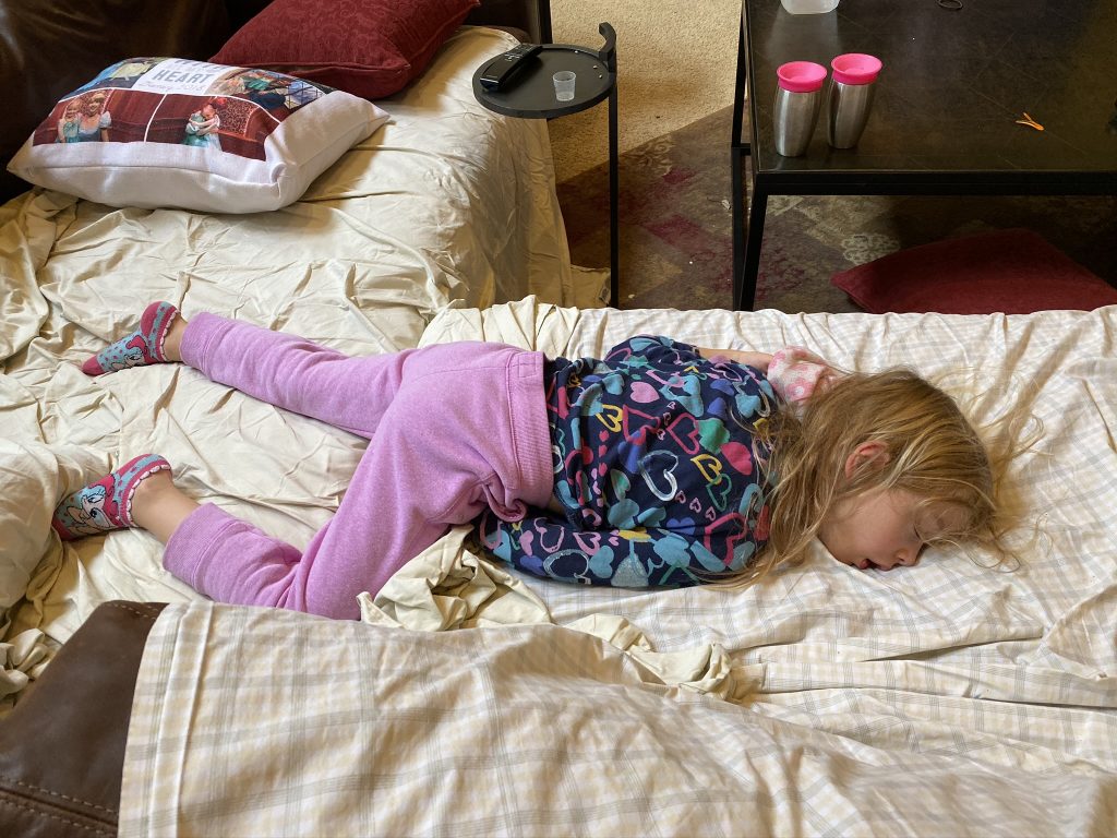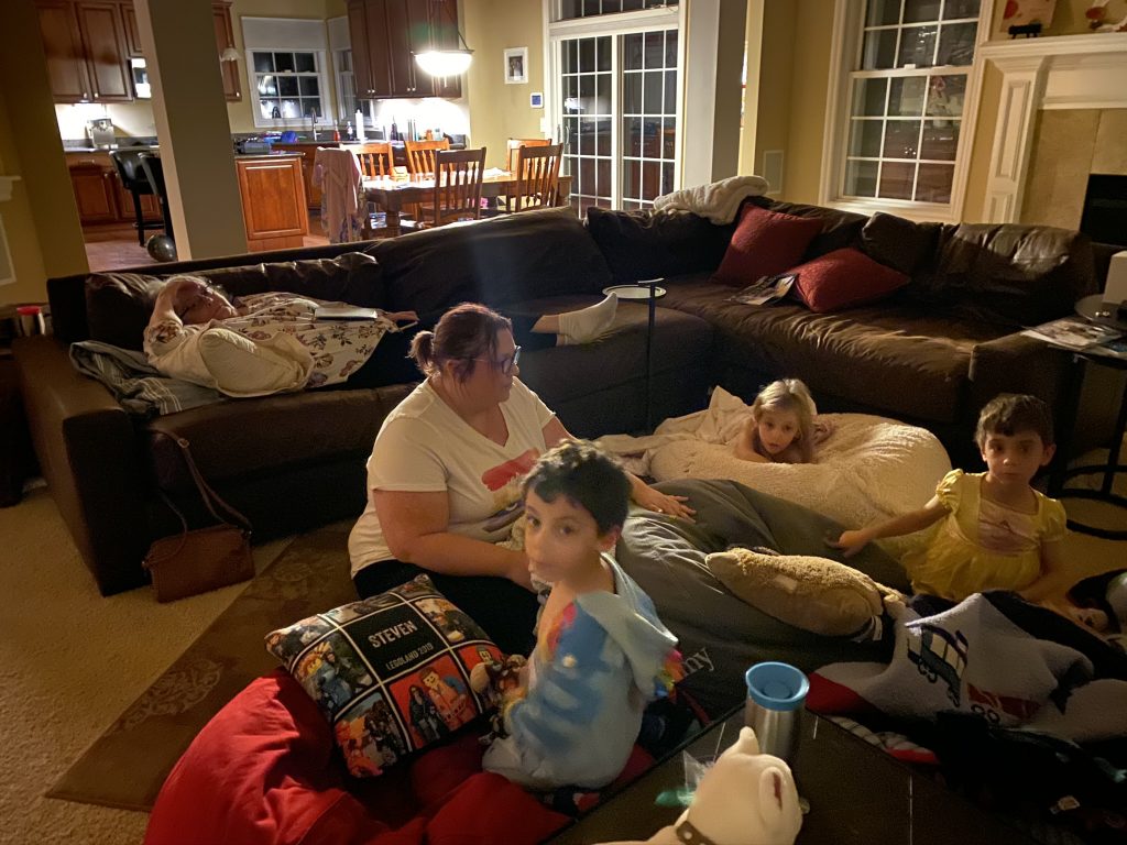 I had plans for a girls weekend in Columbus but our plans were canceled at the last minute but we didn’t want to throw off everyone else’s plans so a) Penni still came after dinner and b) Steven, Sammy and Amaya had a planned sleepover in the living room with Daddy and Grandma Sunshine.