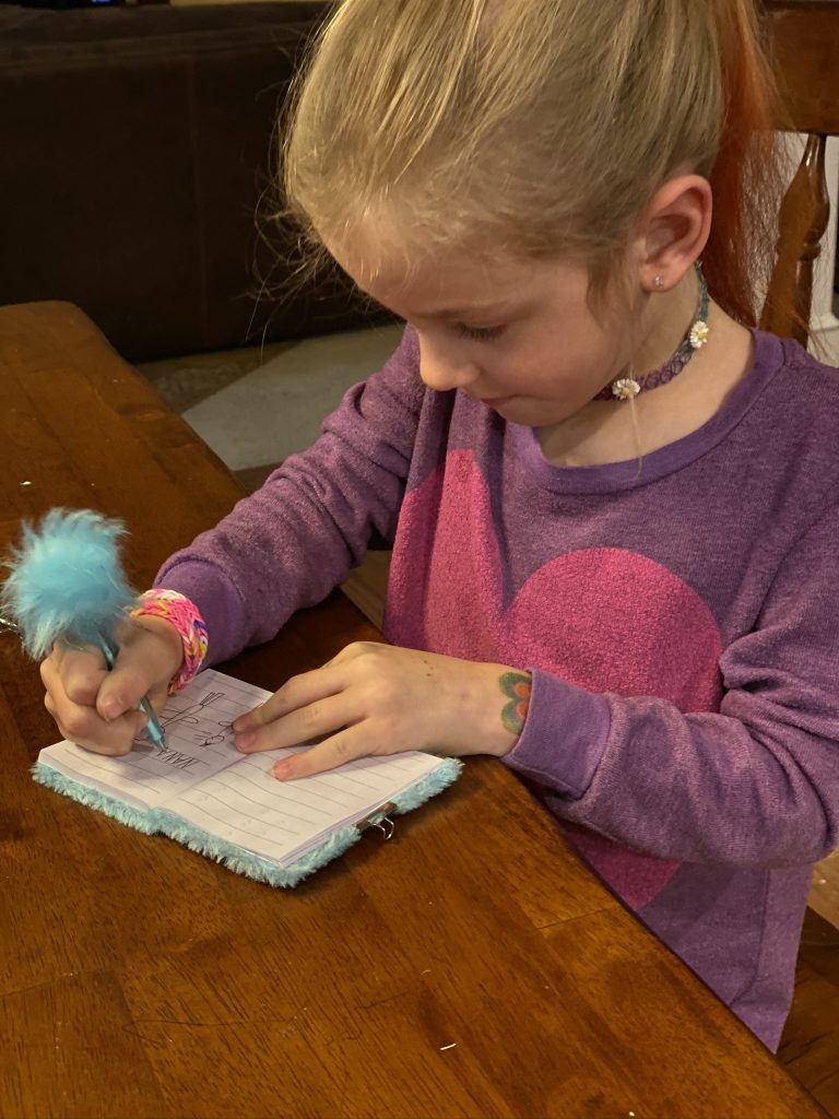 This child. She’s getting so old, so fast and, wow, does she love to write in her journal.