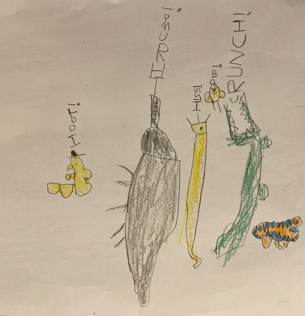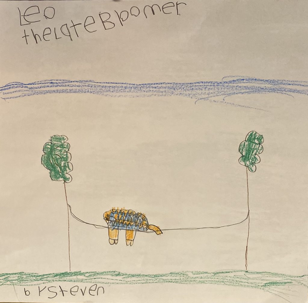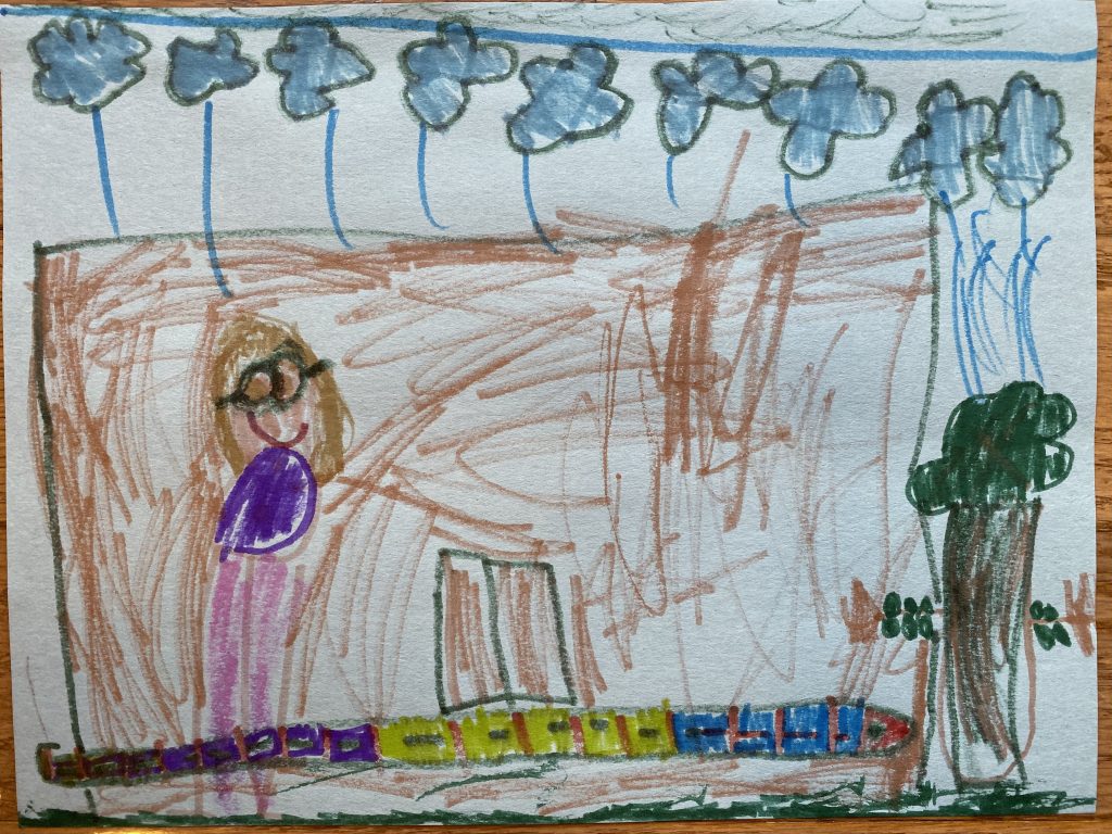 This is Steven’s version of a student and a snake at school. “Just because a person in my drawing has glasses doesn’t mean it’s me.”