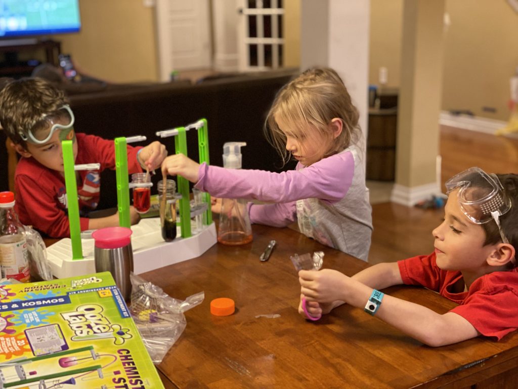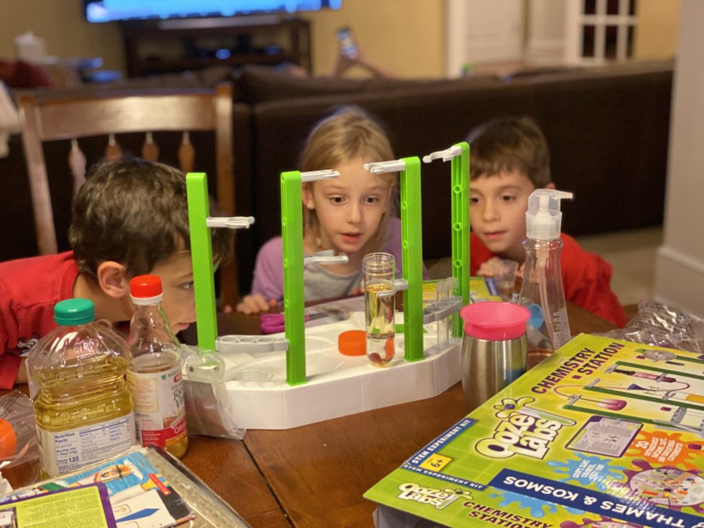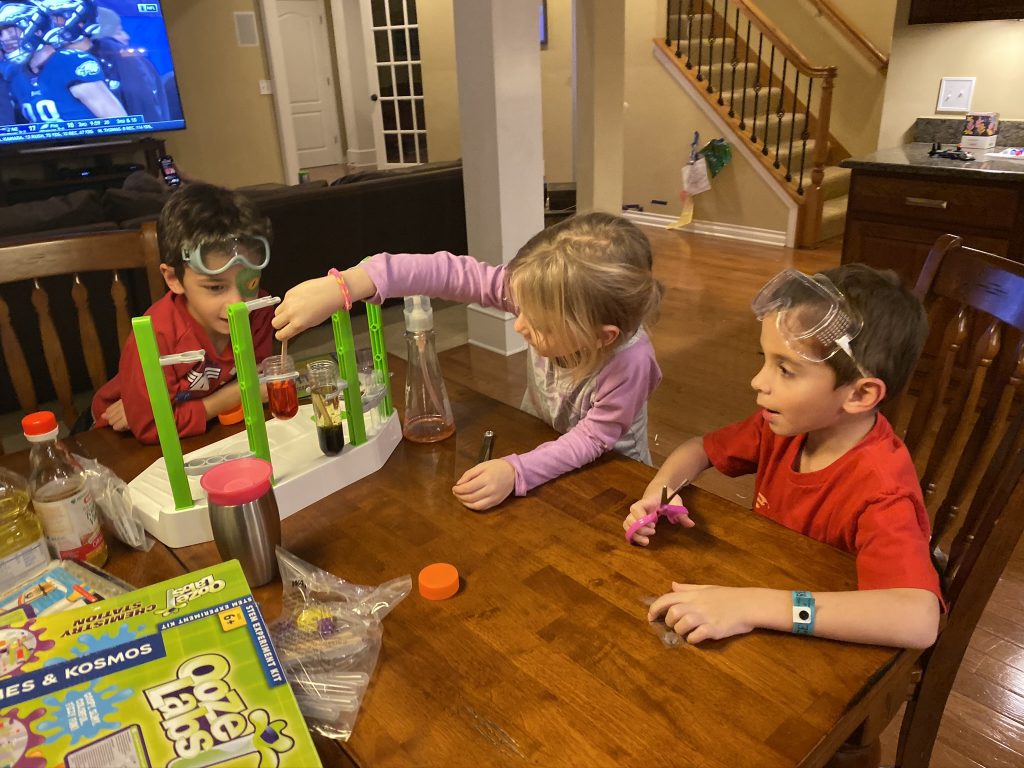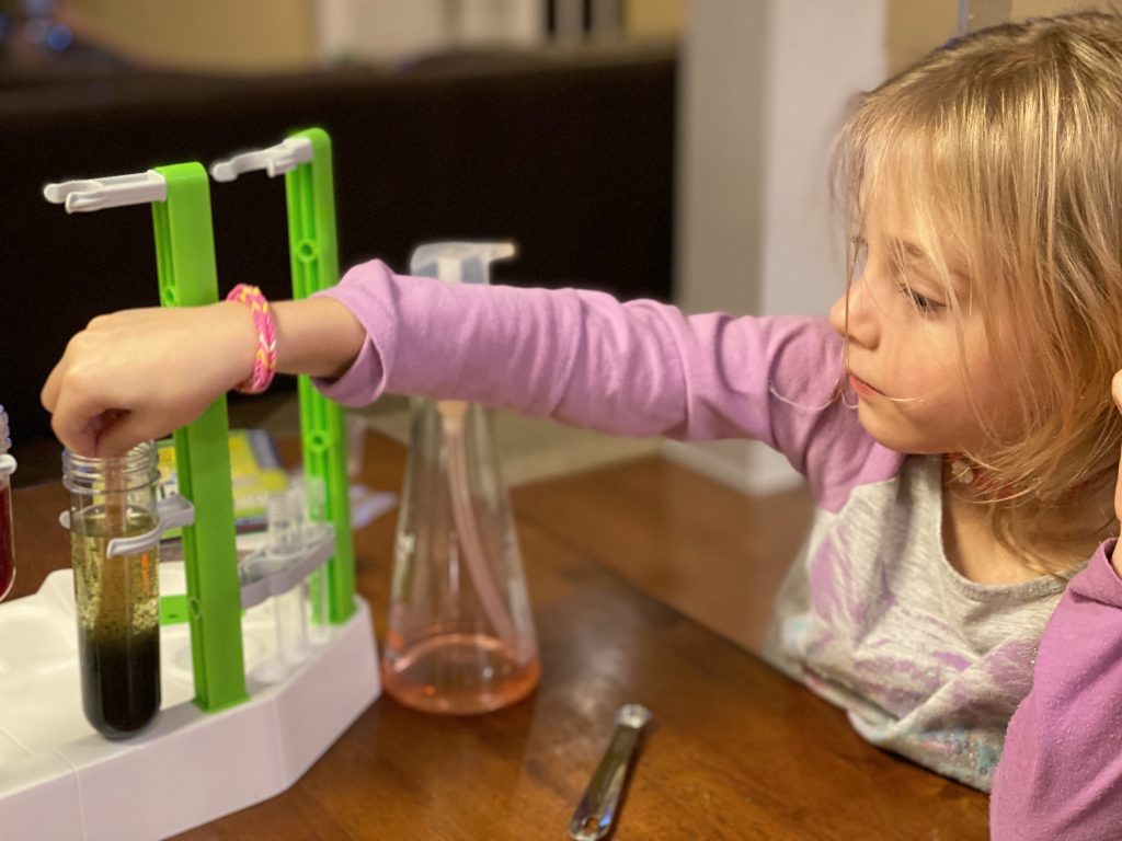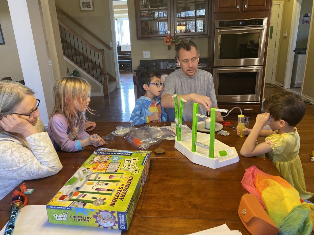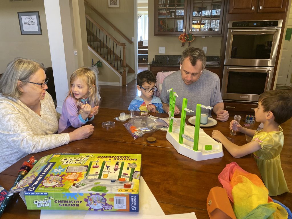 Before Grandma left, the kids had a chance to do some experiments from their new chemistry set.