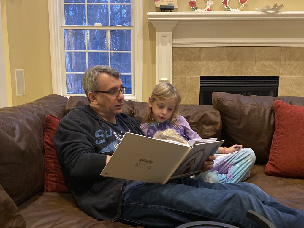 It’s reading, reading, reading around these parts whether it’s books we read to the kids or books they’re reading to us. Occasionally they bring home beginner books they made at school so I’m trying to do my part and be sure they get time to read them to me.