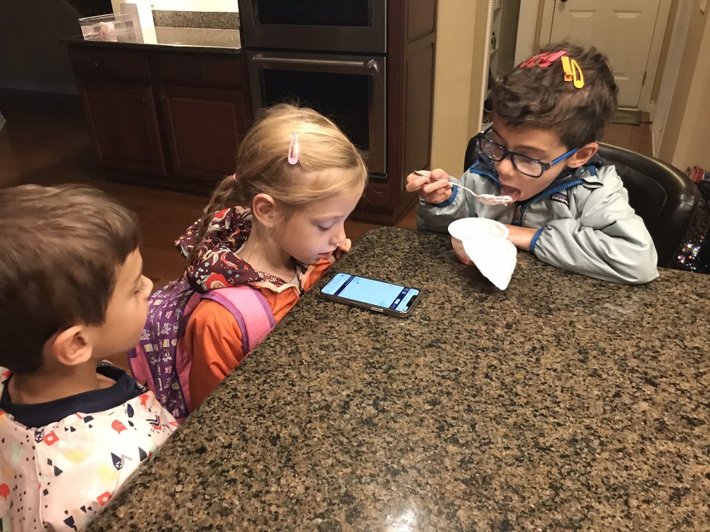 I didn’t mention that we had a continued issue with the van on Monday afternoon. Gabby went to take the kids to get frozen yogurt and the van wouldn’t start (again)! This was particularly problematic because I was scheduled to be away through Sunday and my car is the only other one with car seats. We lucked out because Jason was able to get it started and, when I took it to the shop, they fixed it right there in just 5 minutes. (Issue with the battery connection.) But the kids were still owed a yogurt trip so Gabby took them on Friday.