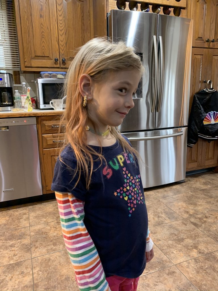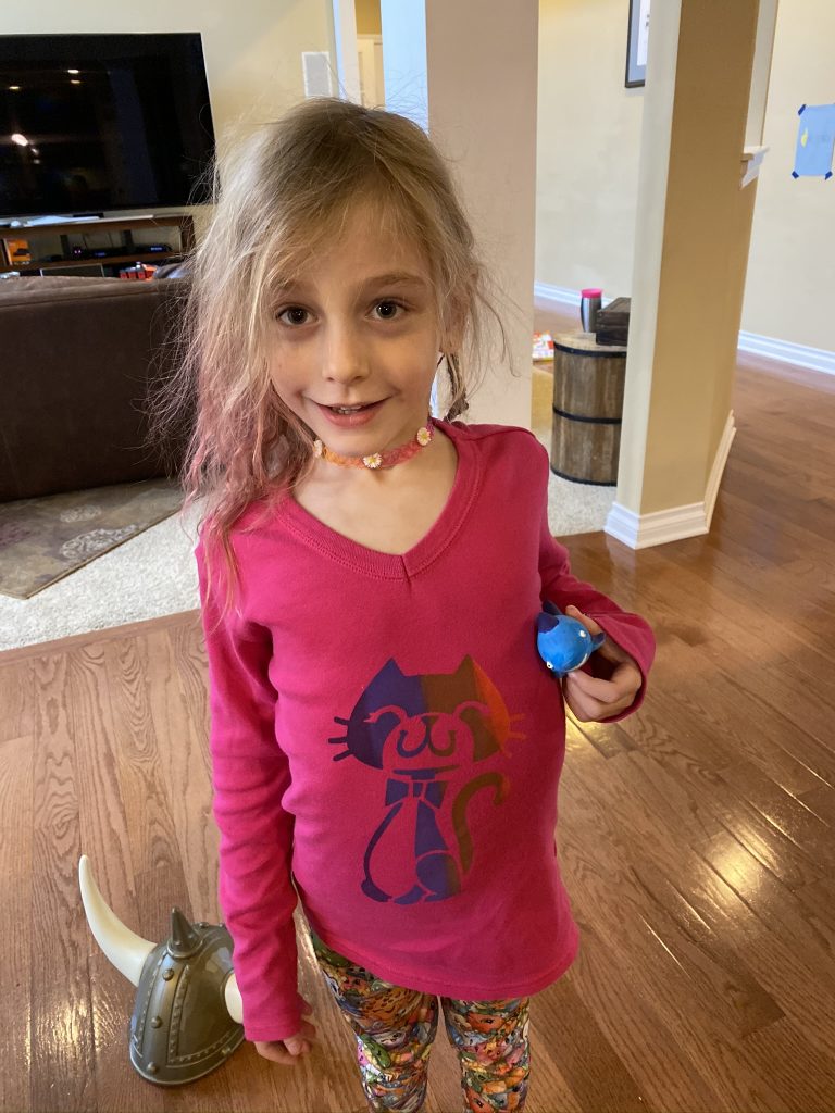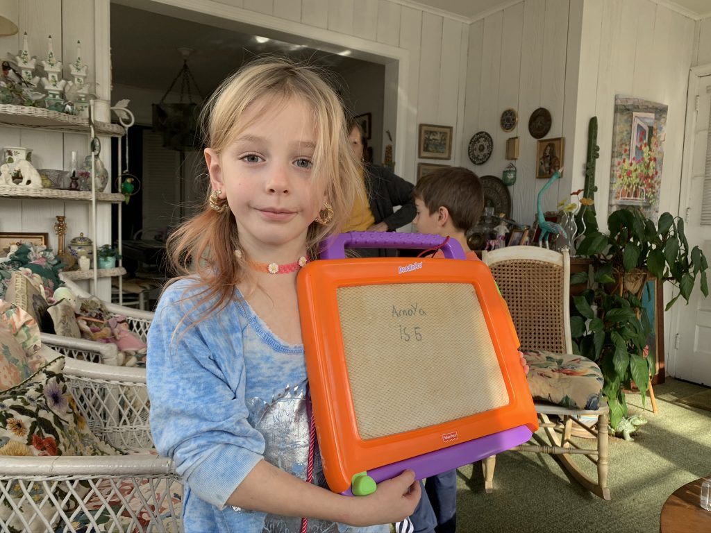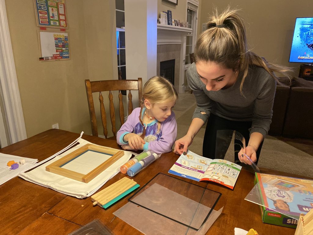 Amaya’s gift was a screen art kit. She has been busy at work creating designs on shirt after shirt. We happened to have couple of blank shirts in the house which none of the kids wear (because they’re blank) so all 3 have new custom creations.