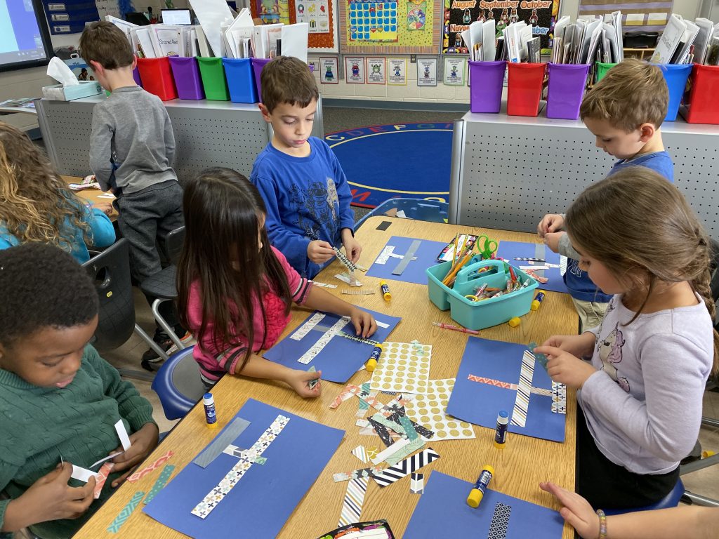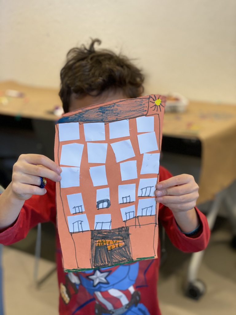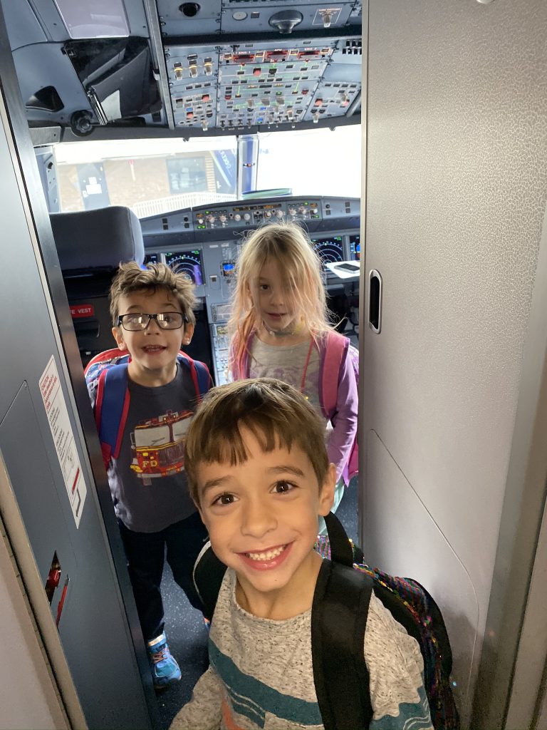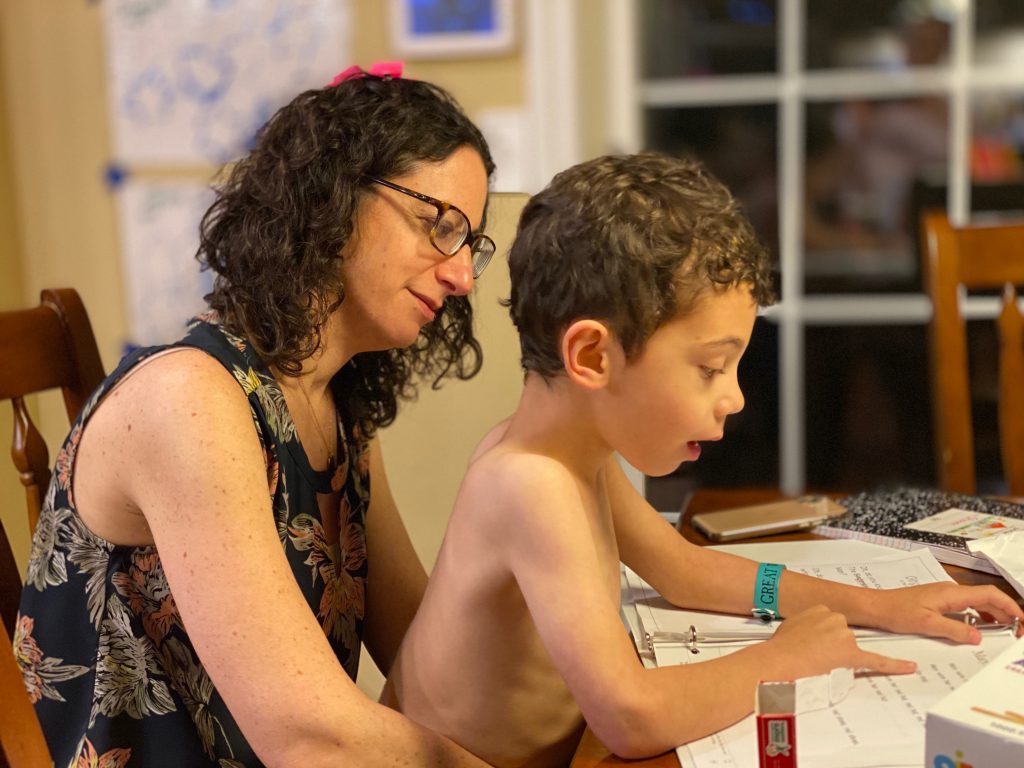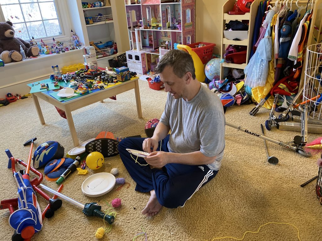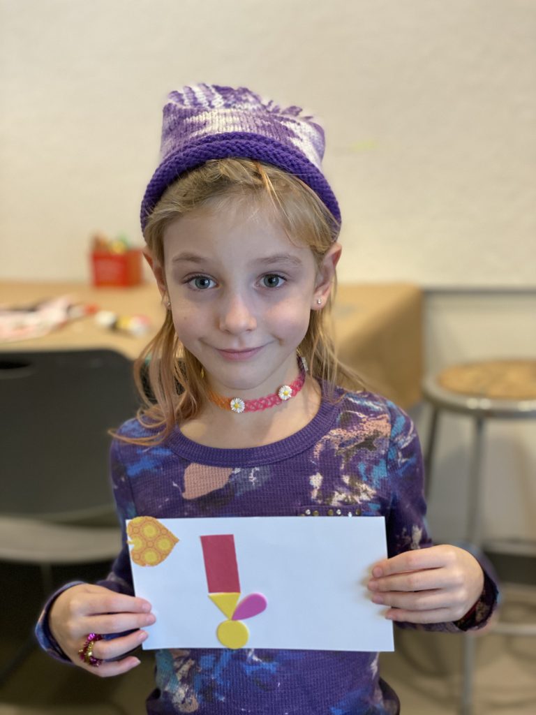 The kits come with blunted metal needles and patters with the holes already cut It was a slow start with lots of “the thread fell out” comments but practice makes better! Once these three can thread their own needles (Sammy is getting it) and tie their own knots, they’ll be totally independent.