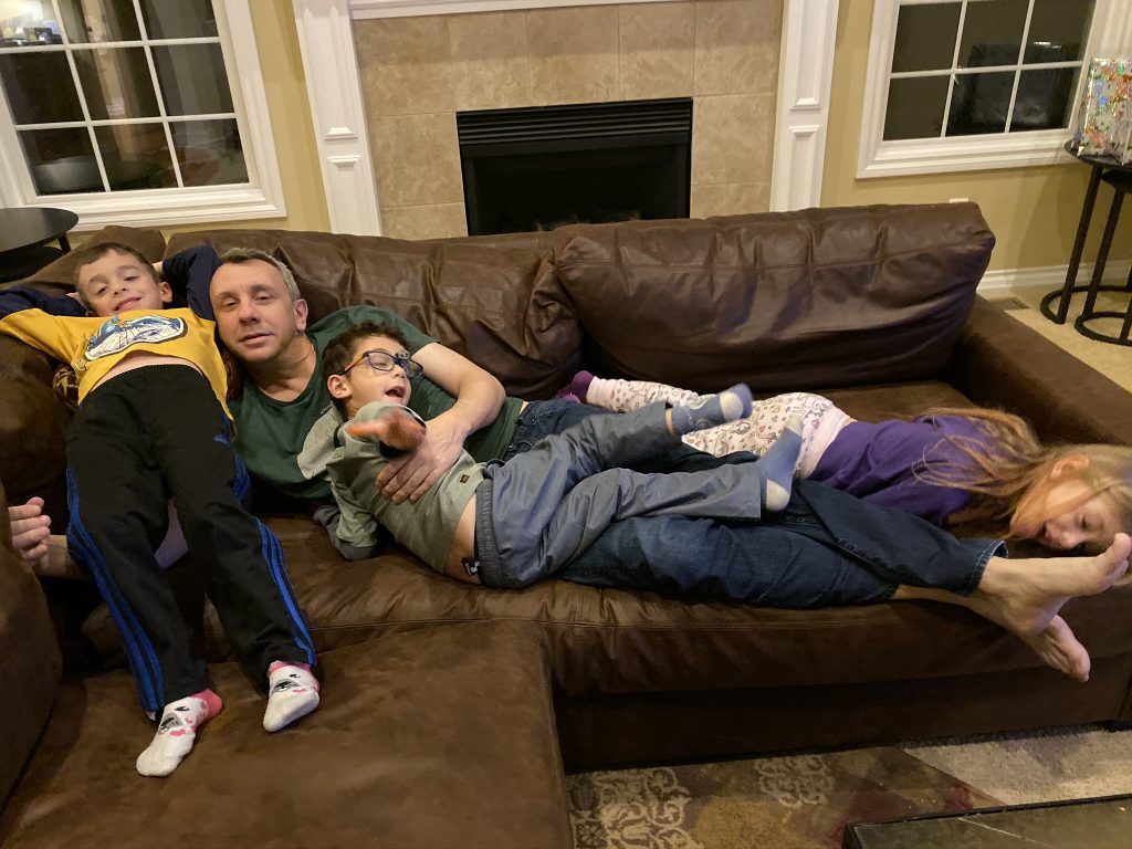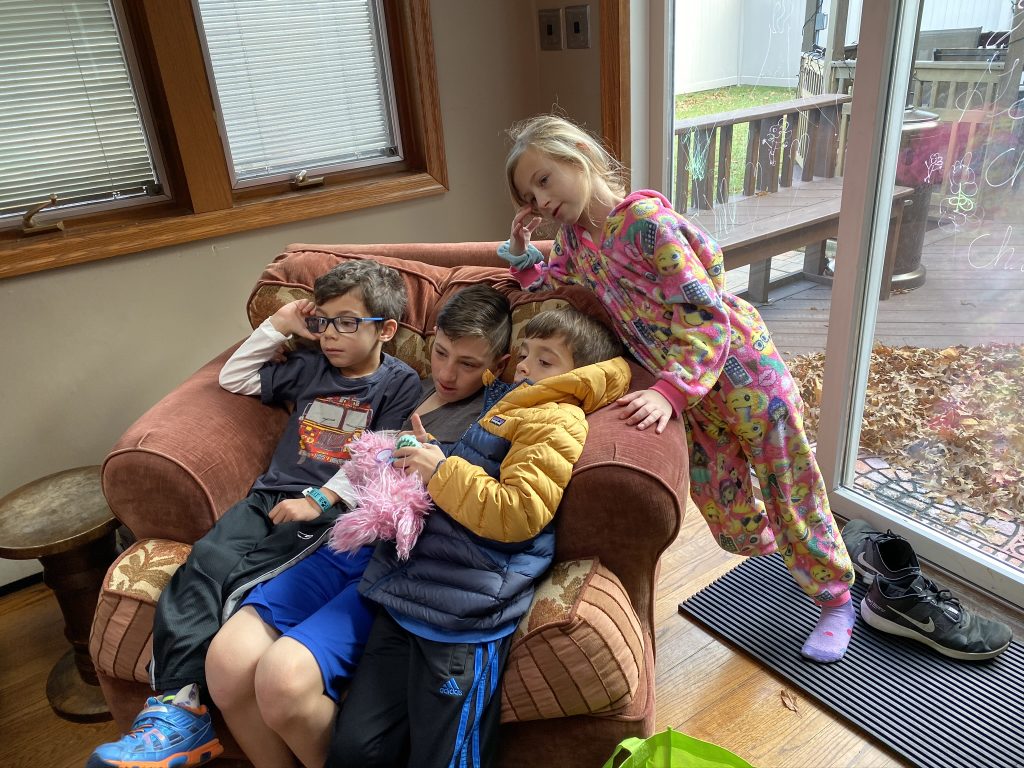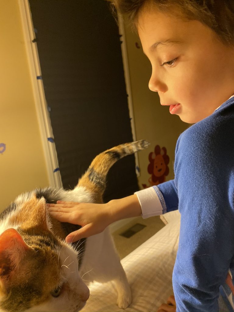 Speaking of Sally, she’s been fantastic with the kids lately. So patient and really letting them pet her. (Though Amaya is still pretty scared of her.) Every time Steven pets her he says, “I think she likes me!” Sammy even got her to eat a treat out of his hand.