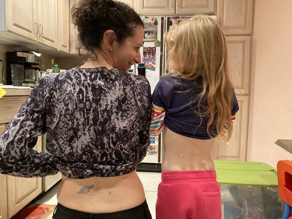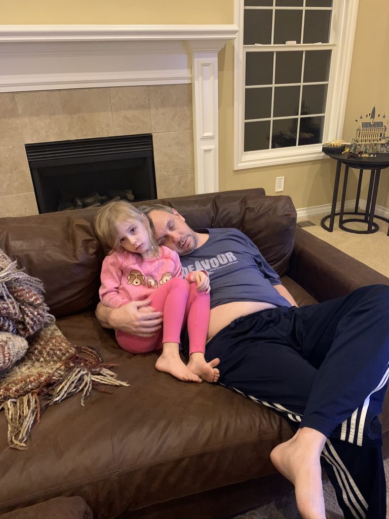 Daddy/Amaya cuddles for his little girl with aching knees.