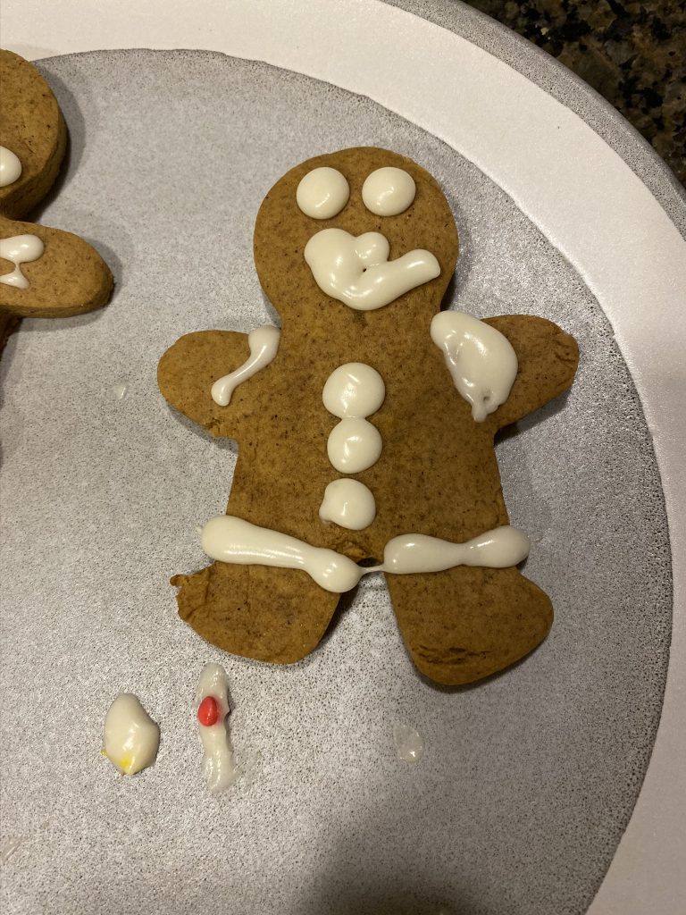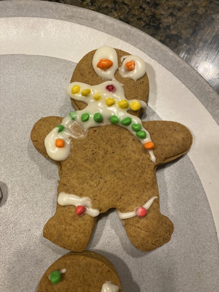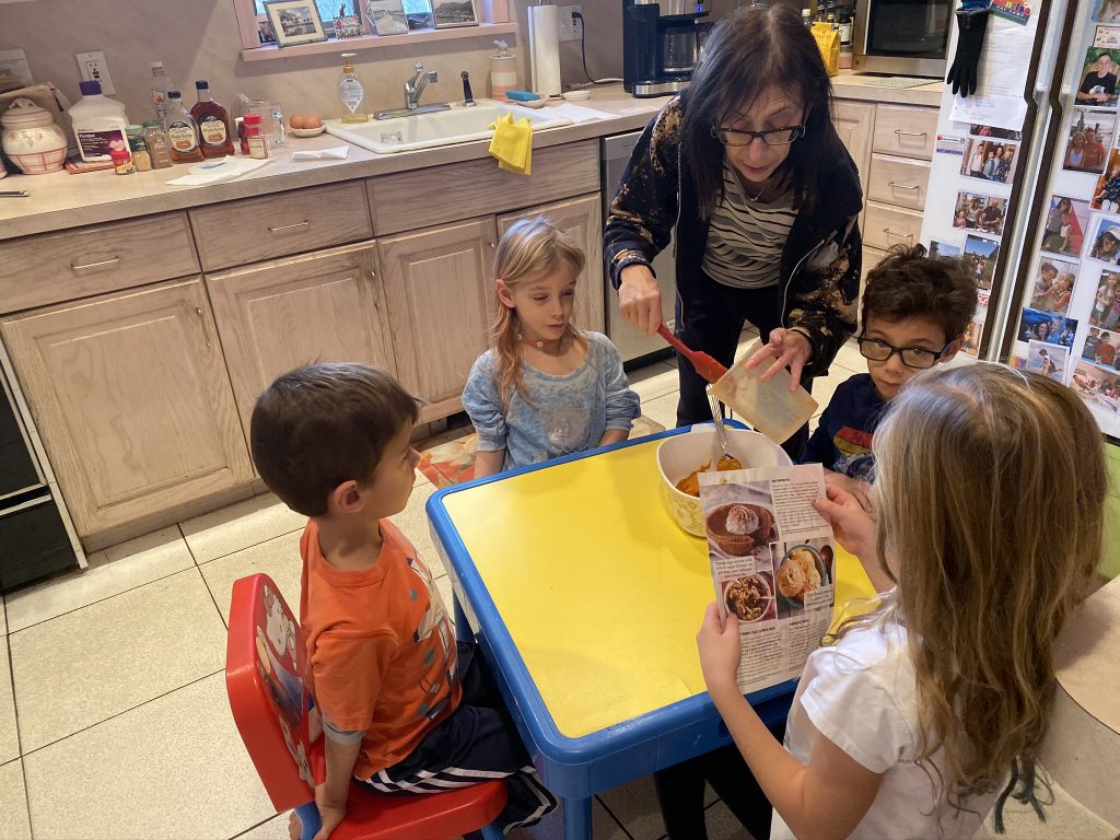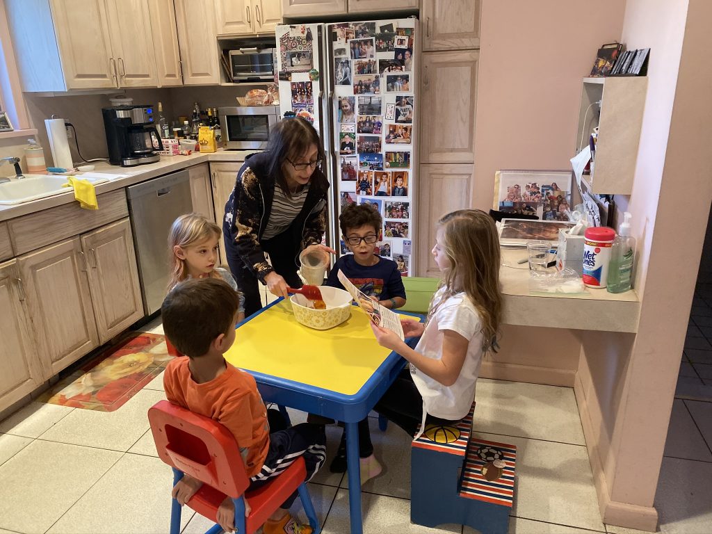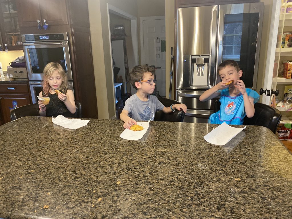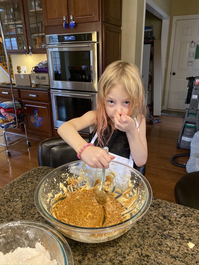 For Hanukkah (night 7!), Nana and Papa got the kids a Raddish Kids subscription. It’s a cooking club and every month we get three new recipes. They also get their own apron, a new iron-on apron patch each month and cooking tools to use with that months’ recipes. This month’s theme was Holiday Traditions Around the World and the recipes were for latkes, gingerbread cookies and tamales. Yesterday we spent about 2 hours making the latkes and cookies.