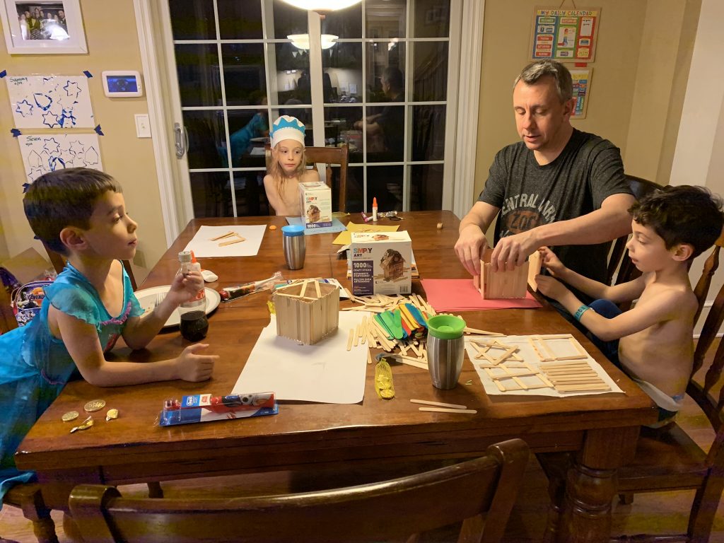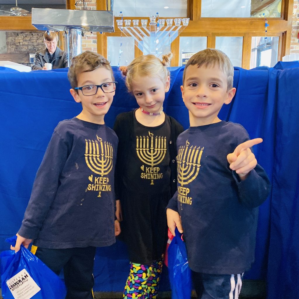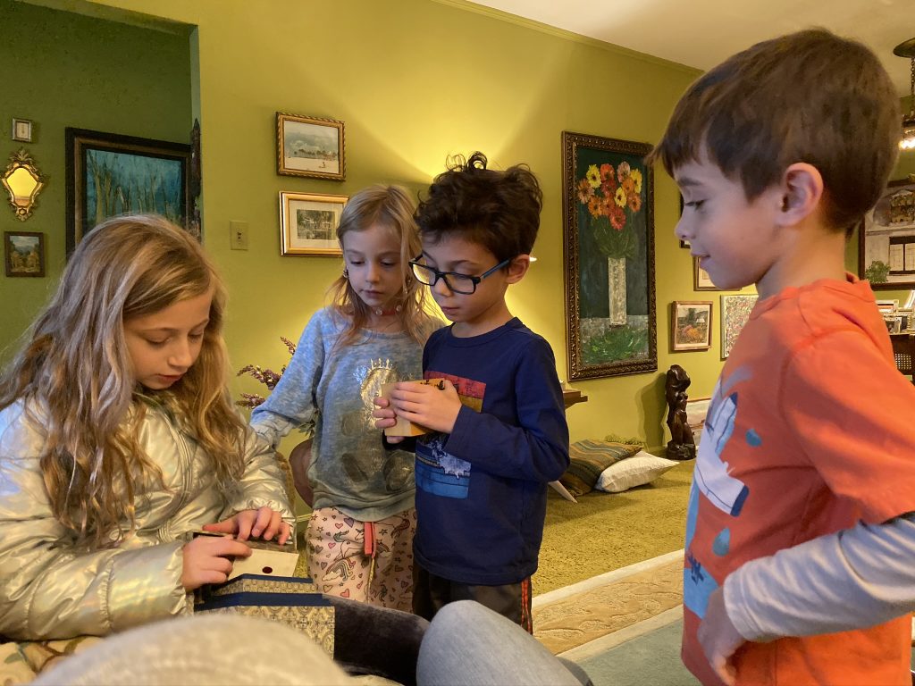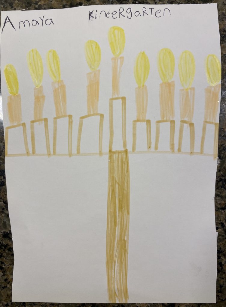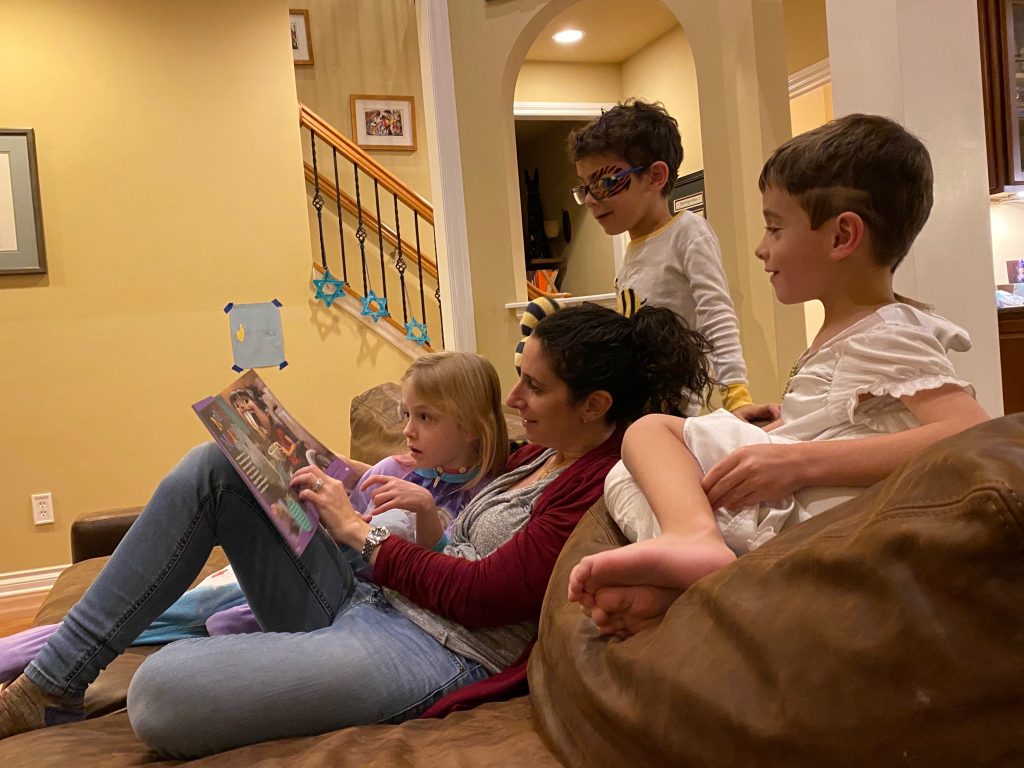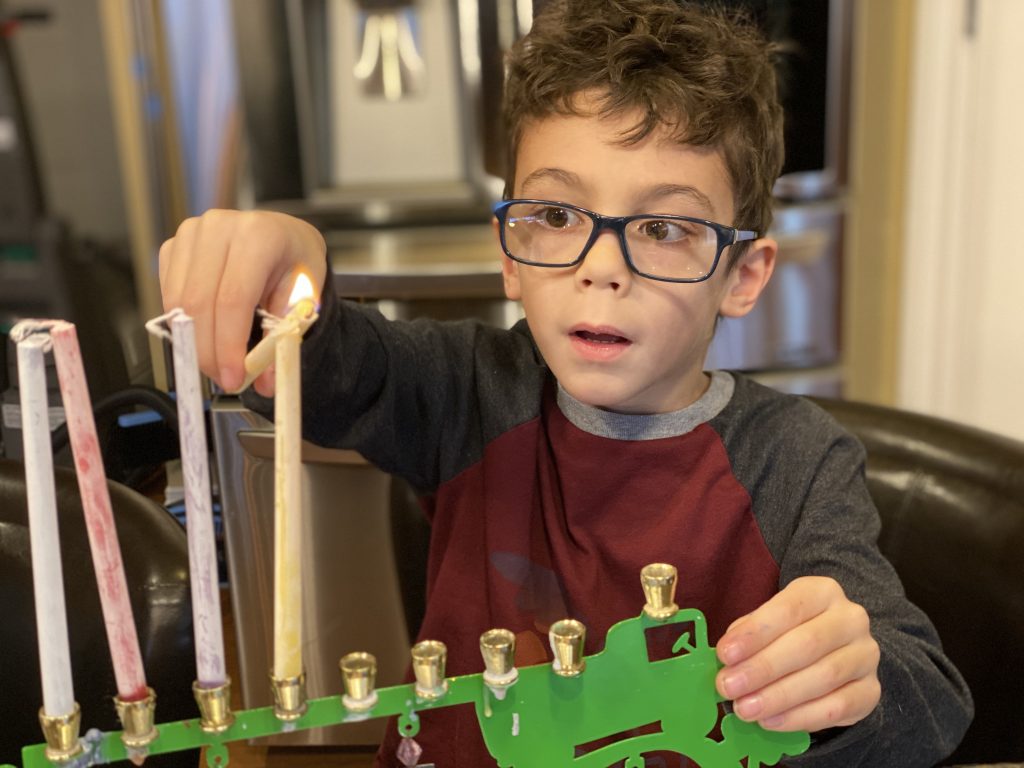 And on to celebrating night 4! Steven, Sammy and Amaya are now quite proficient at lighting their menorahs and, this year, they even know the second blessing that we say each night.