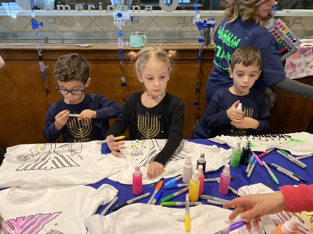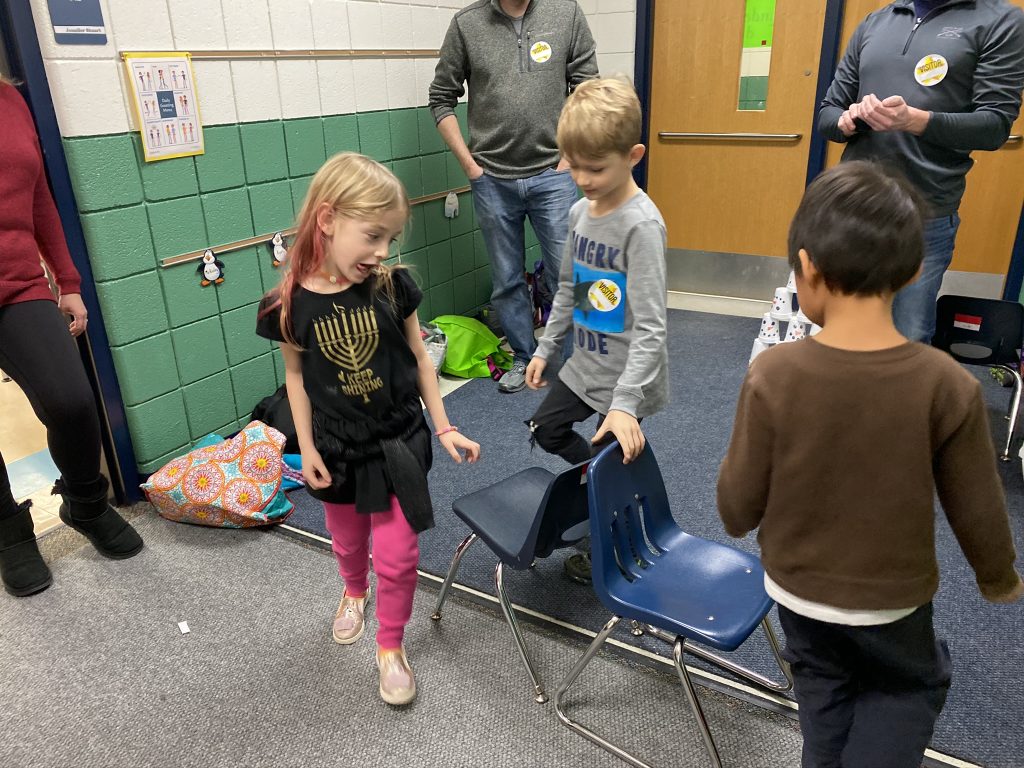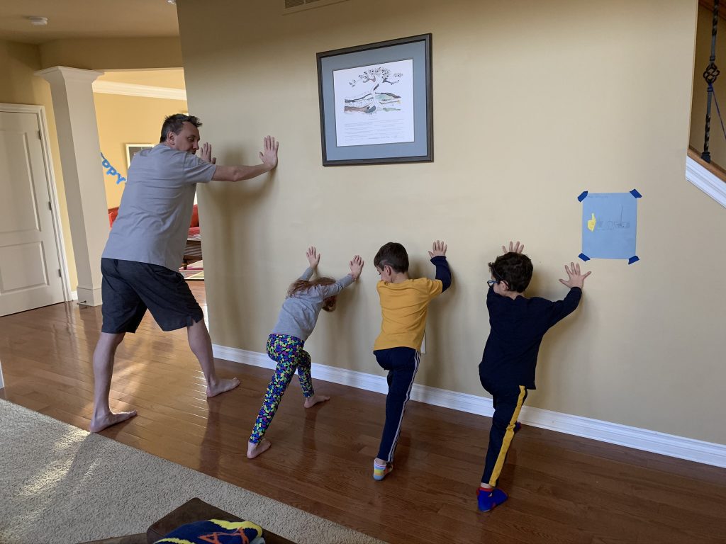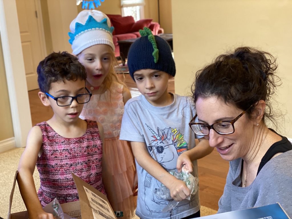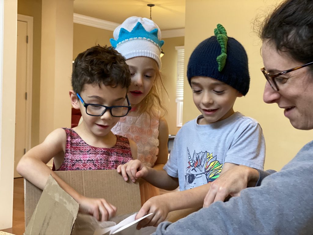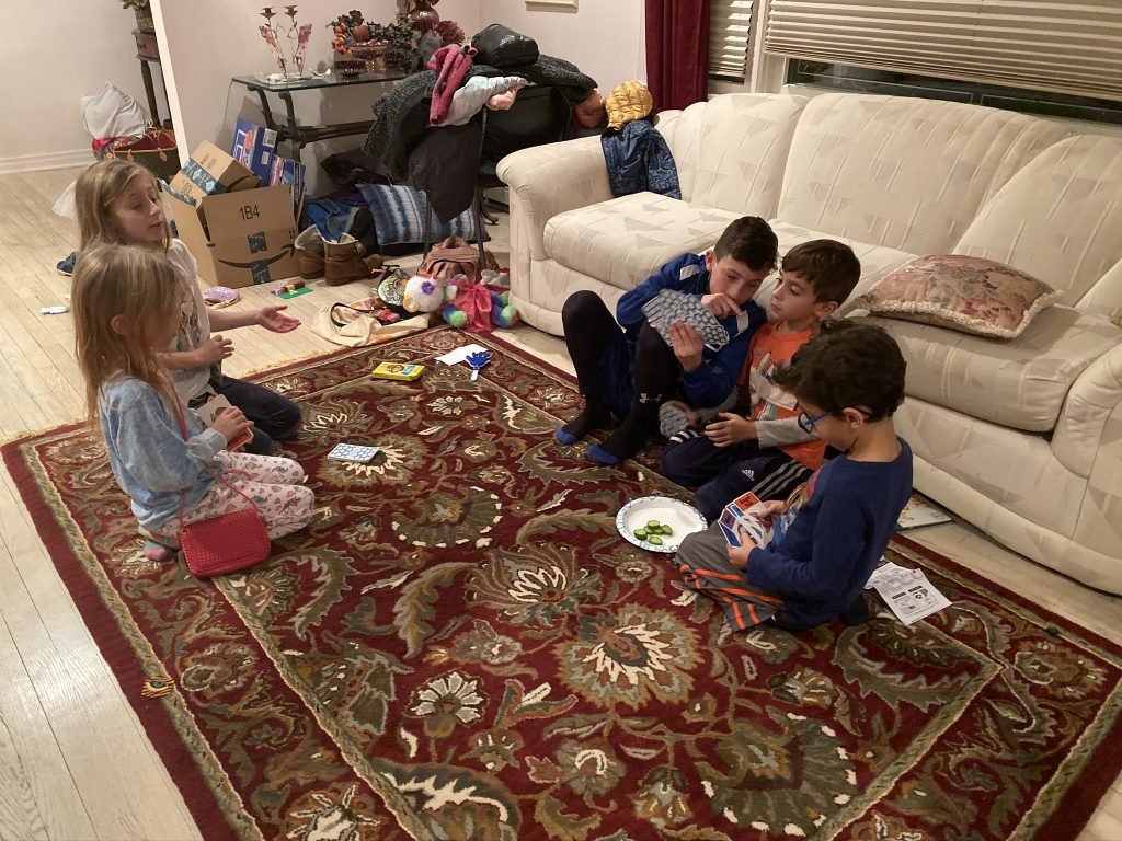 And on to celebrating night 4! Steven, Sammy and Amaya are now quite proficient at lighting their menorahs and, this year, they even know the second blessing that we say each night.