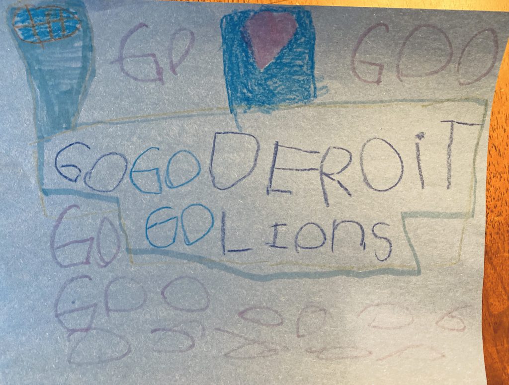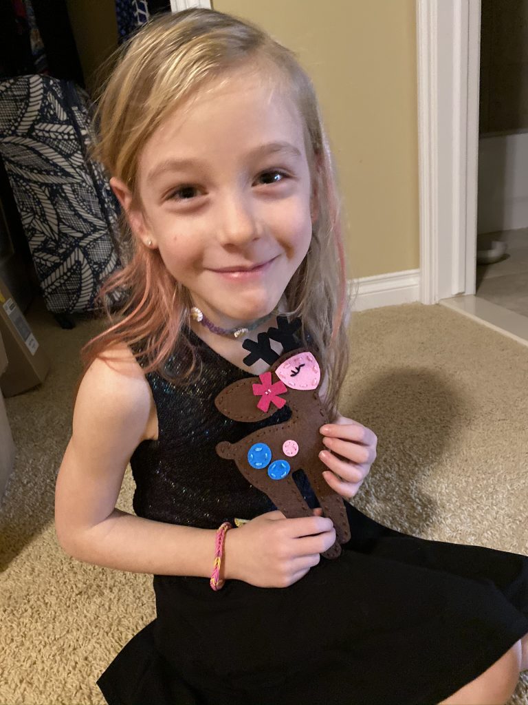 Saturday morning started with more sewing. Sammy worked on his broccoli and Amaya completed a reindeer.