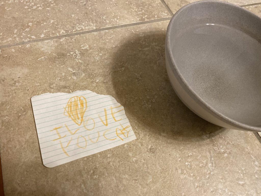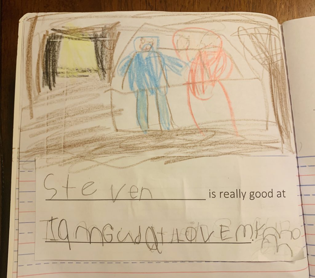 Amaya and Steven like writing love notes. Steven wanted to write one for Sally but didn’t know how to spell her name so he wrote “I love you cat”. <3