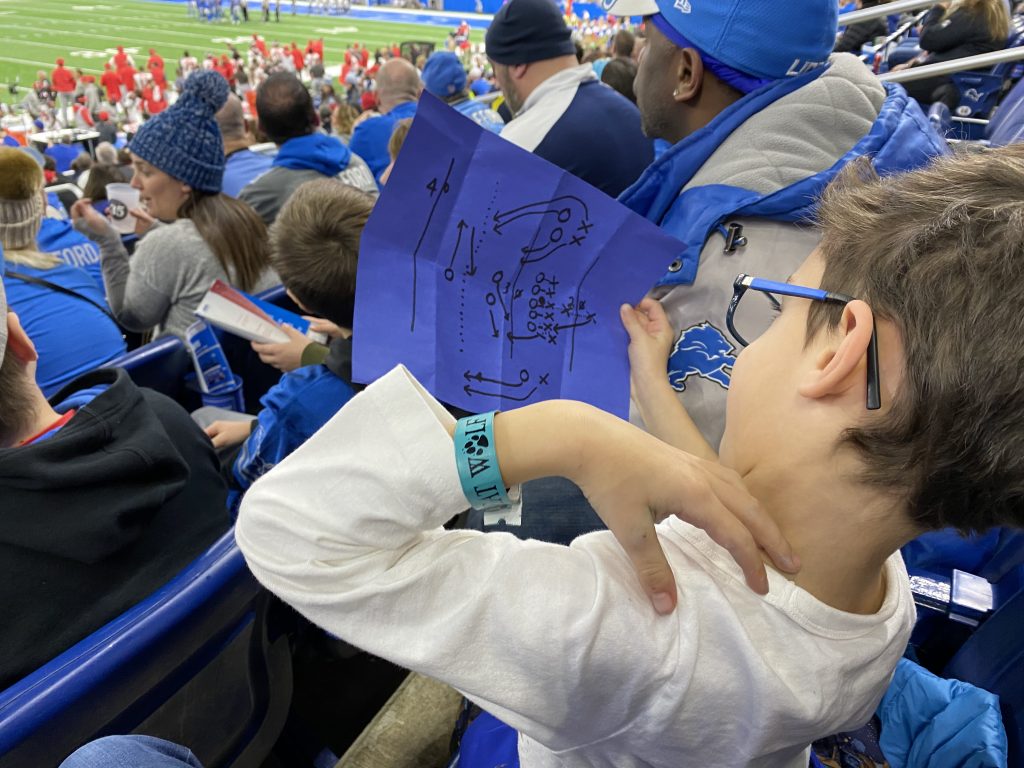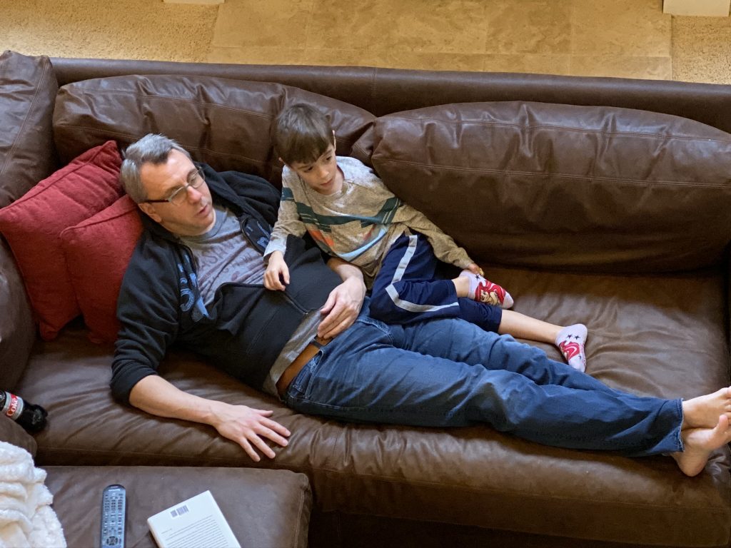 Cuddles with Sammy. He was totally into the Lions game.