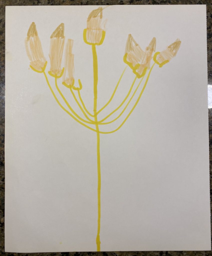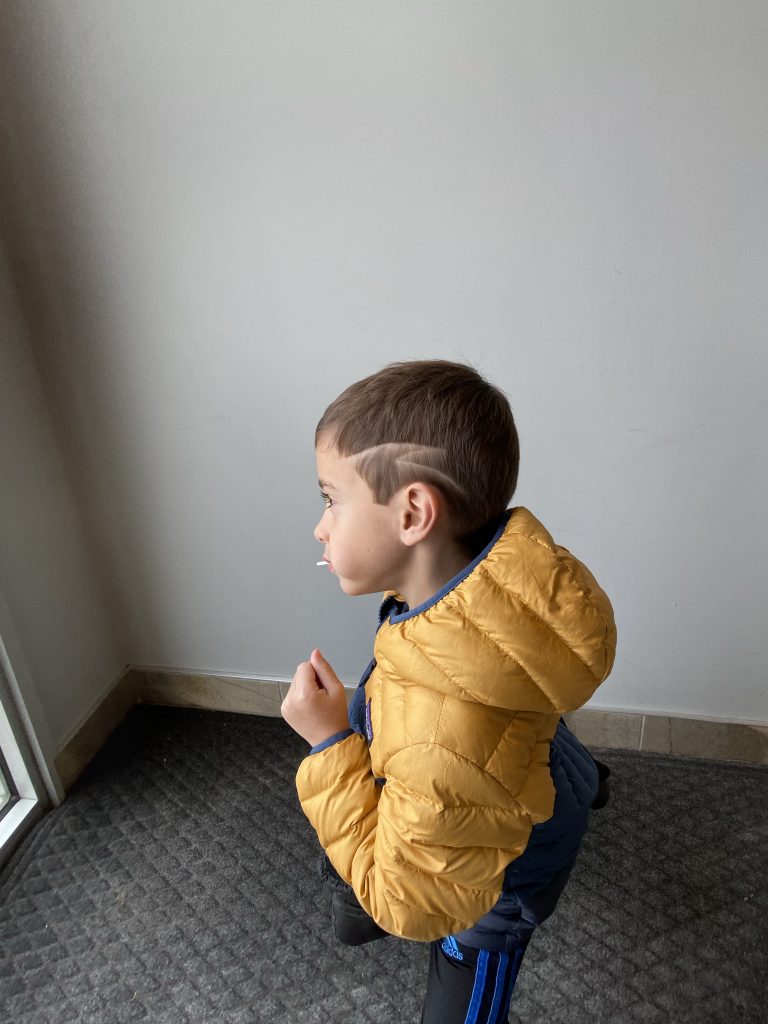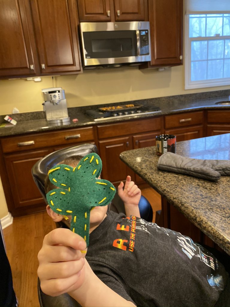 Sammy thought the pattern he originally started was bit too intricate so he stepped back to an easier option. It’s a clover but he thinks it’s broccoli which I like much more.