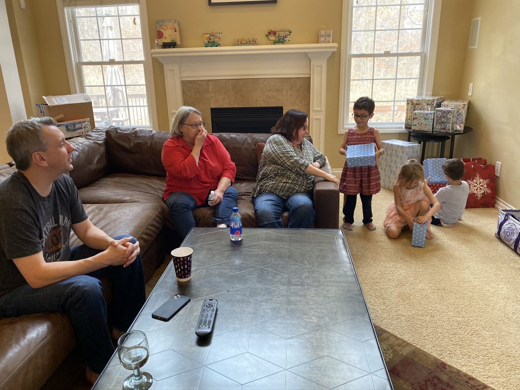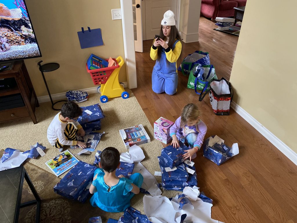 On Night 5, Thursday, the kids were gifted beginner sewing sets. They’ve been a huge hit! SSA have always been interested when I sew and now they get a turn. I was particularly tickled when I asked if they knew who in our family was a great sewer and they said, “Poppy Steven”.