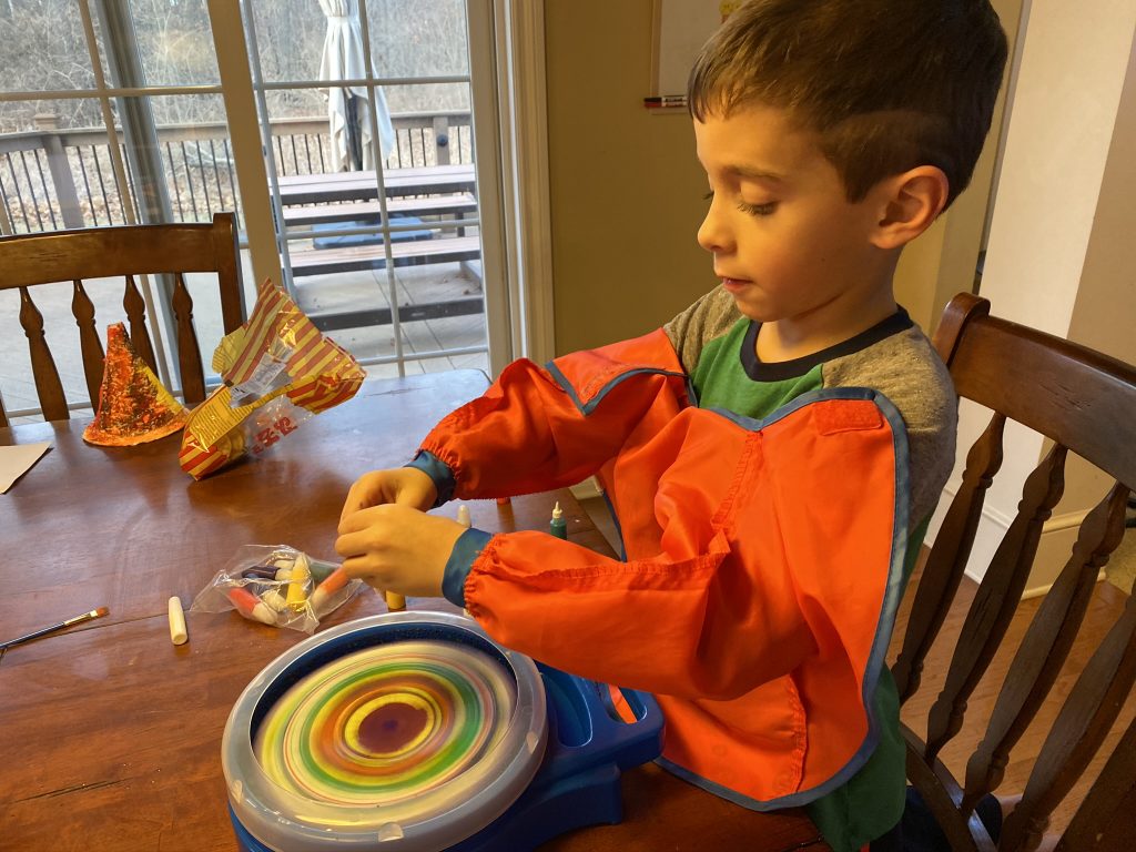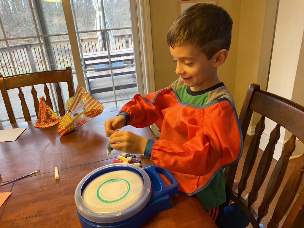Sammy was gifted this spin art set which is perfect for him. He doesn’t always love to spend time on the details of art but creating this way is right up his alley.