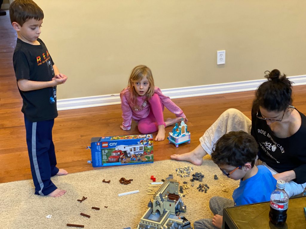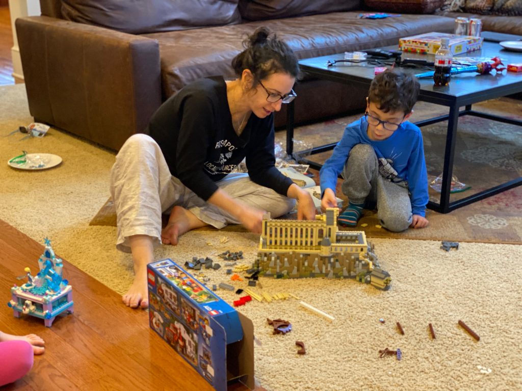 There was a lot of legoing happening in the Land of Cheltenham today. Amaya built a Frozen jewelry box. Steven built an RV and a land speeder. I am still working on Hogwarts Castle, with helpers.