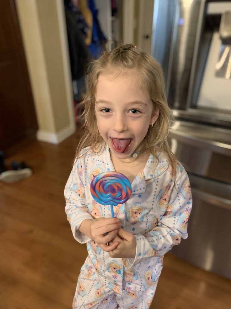After we registered for camp, each kid had a chance to spin a wheel for a prize. Sammy won a Starbucks gift card so I told him we could stop for hot chocolate on the way home. Steven was fine with it because he won his own prize. He said something along the lines of, “When we spin the wheel we win different things.” Amaya was beside herself that Sammy’s prize was something that’s “not healthy”, though. It didn’t matter to her that she had a dumdum at the event and Sammy didn’t. It didn’t matter to her that, yesterday, she had a cupcake, cookie and ring pop at the birthday party and her brothers didn’t. She’s obsessed with junk food. (Yesterday at the party I had to draw the line when Amaya also wanted to add a piece of cake to her list of treats. More tears.)