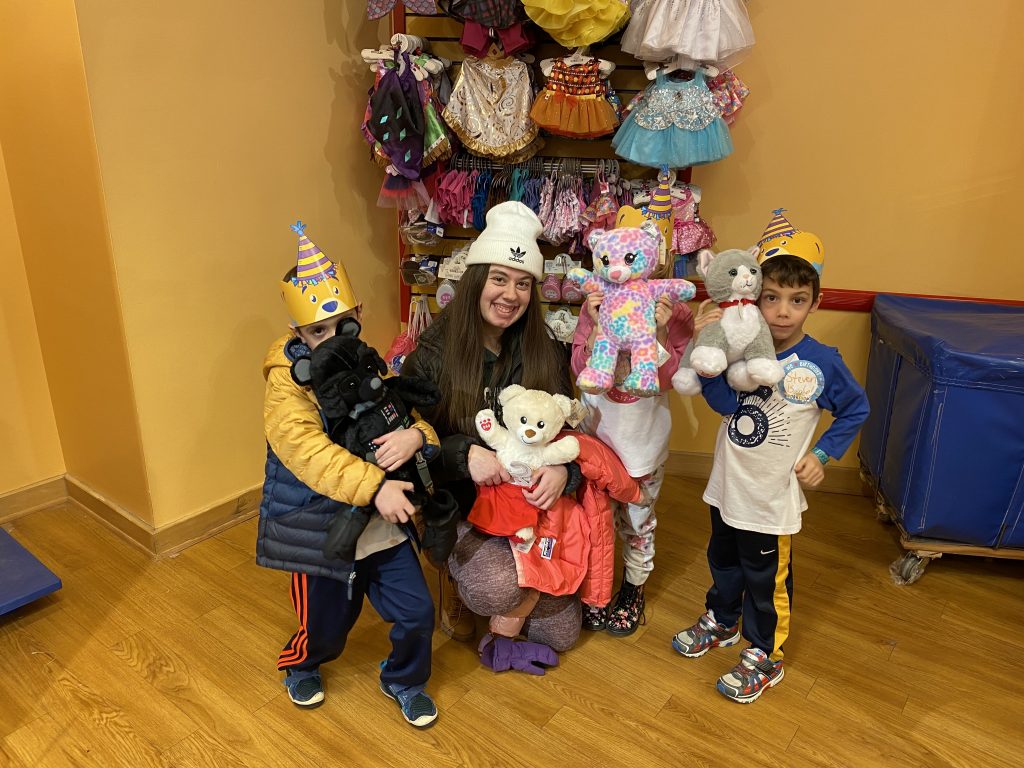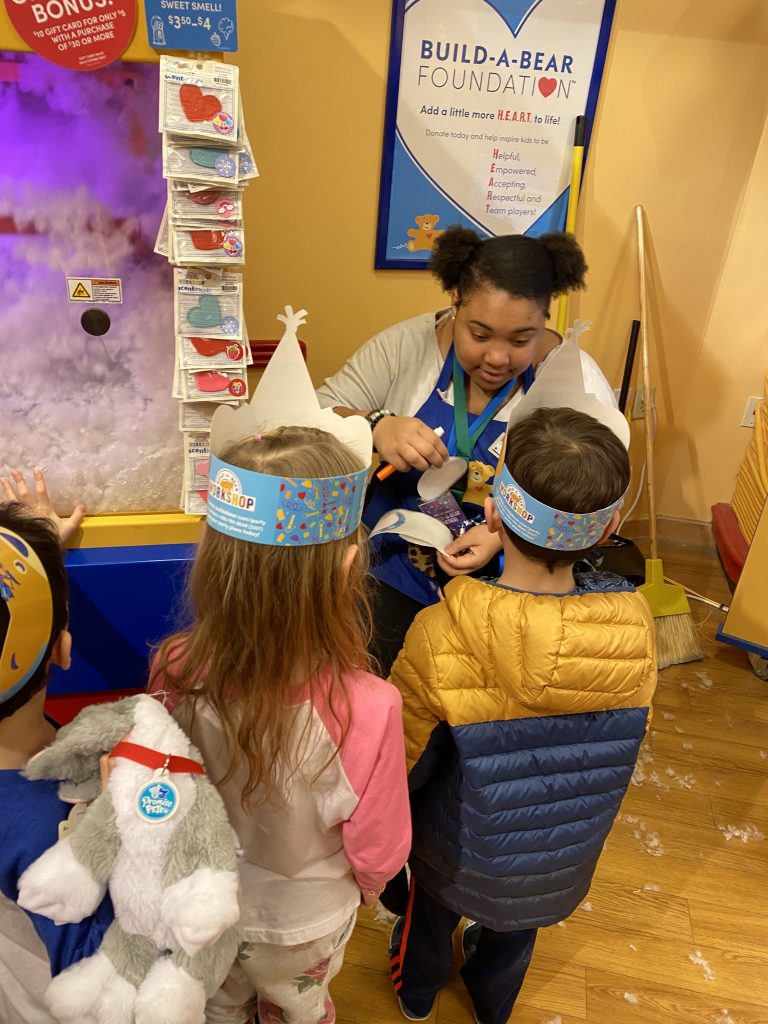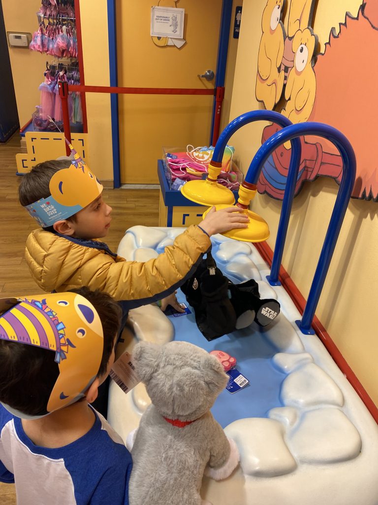 For their birthday afternoon, Gabby took the kids to Build-A-Bear! They got birthday stickers, crowns and even got to put special birthday hearts in their stuffed animals.
