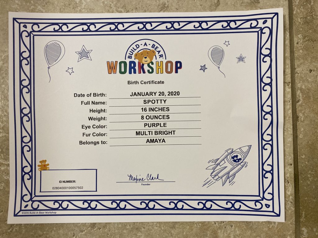 Steven selected a cat named Catty. Sammy went for a Darth Vadar bear. Amaya picked out a bear named Spotty.