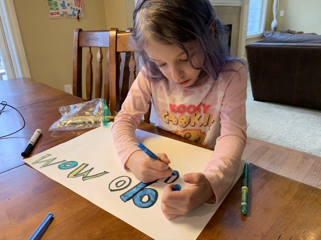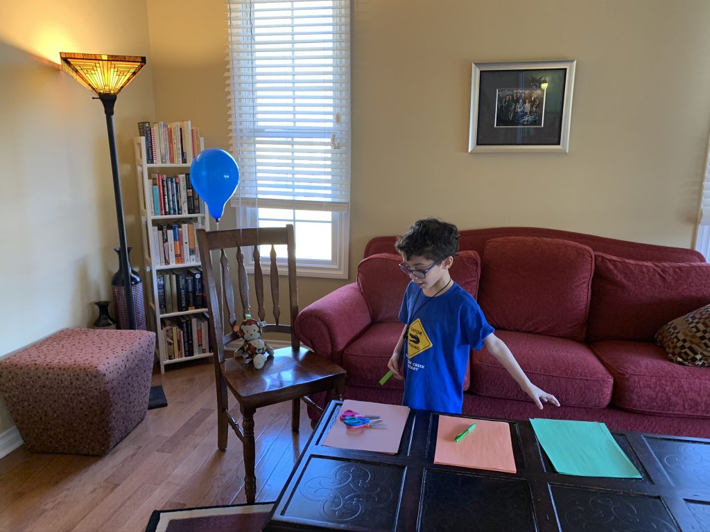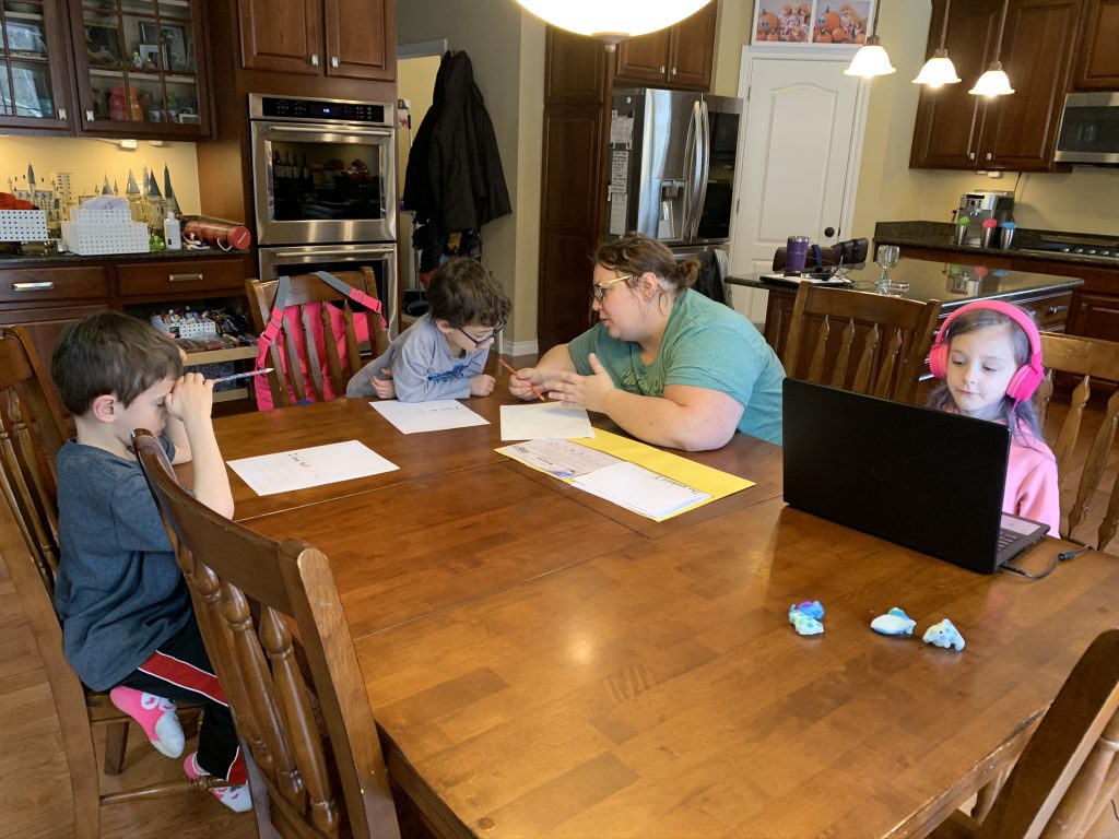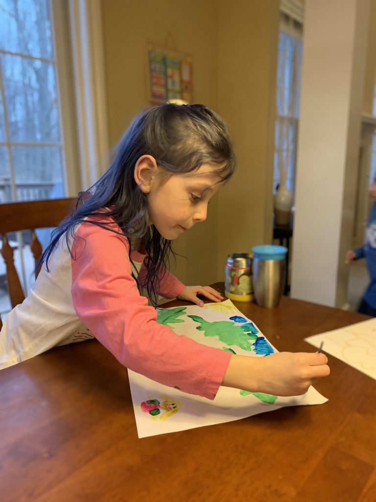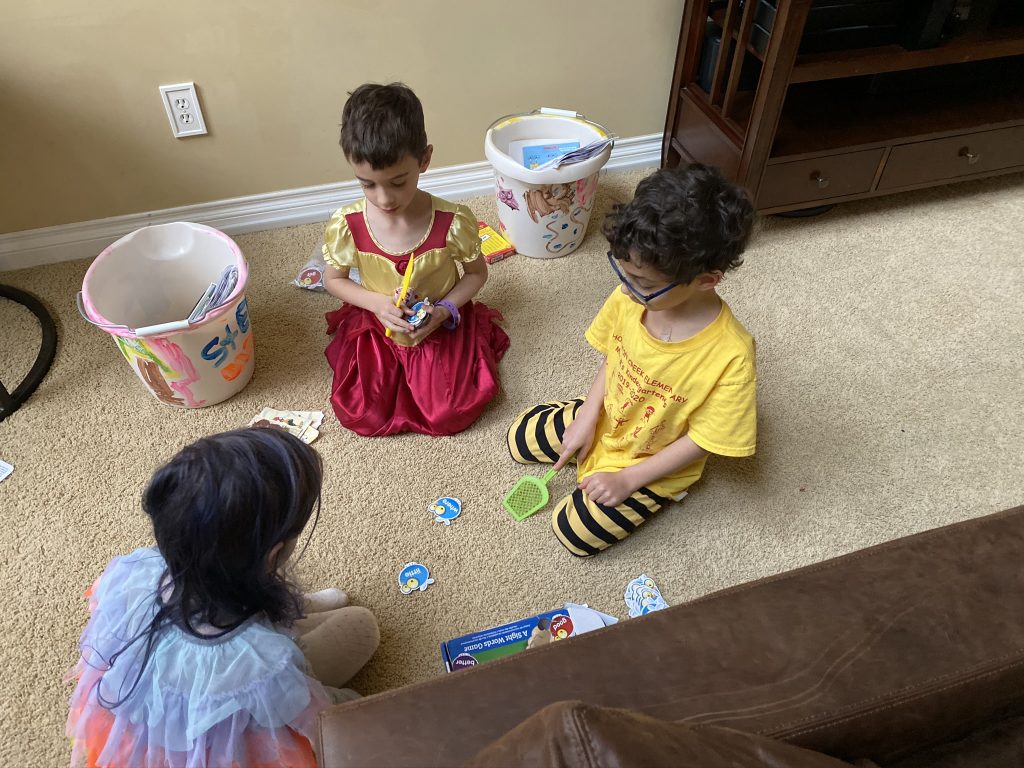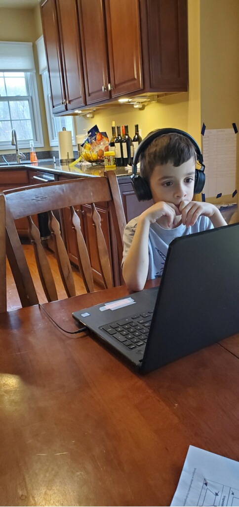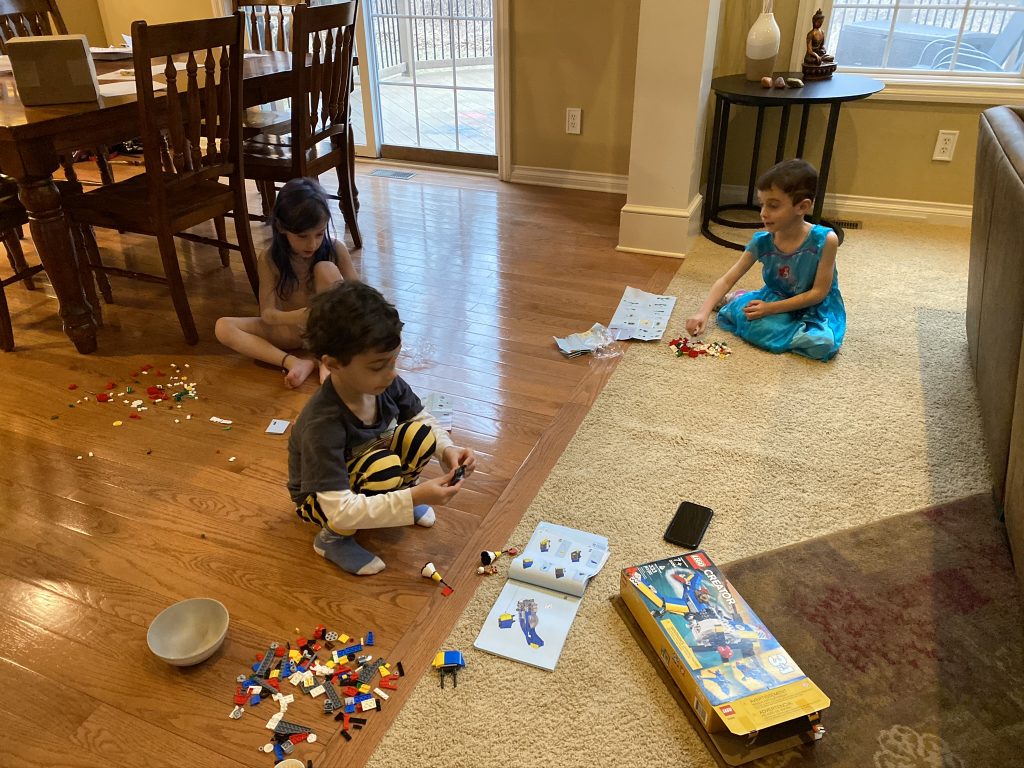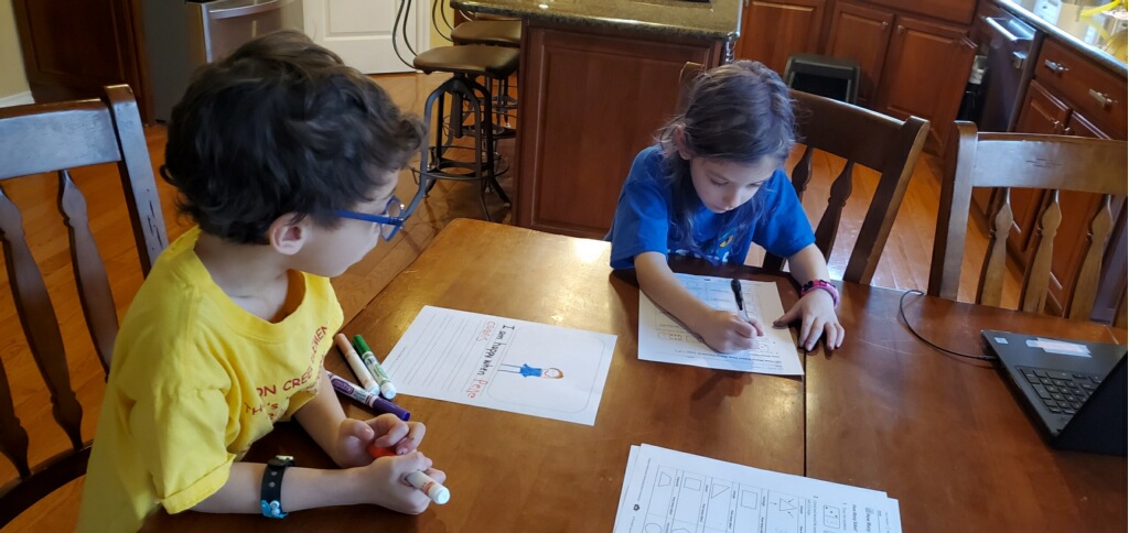 Temple Israel is doing their best to stay connected to families, including through the religious school. On Wednesday morning, the kids had a Zoom class with Ms. Amy. I was working through it but they seemed to enjoy the time, though Amaya asked why they had Sunday School on a day that wasn’t Sunday. Fair enough.