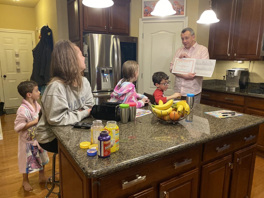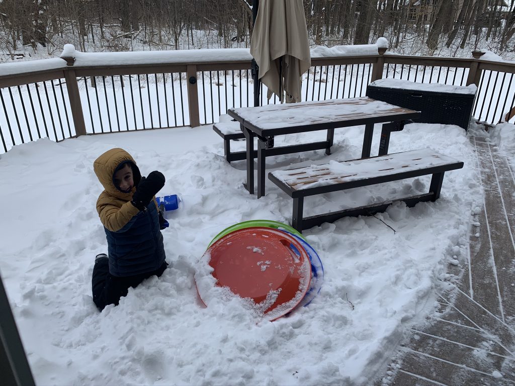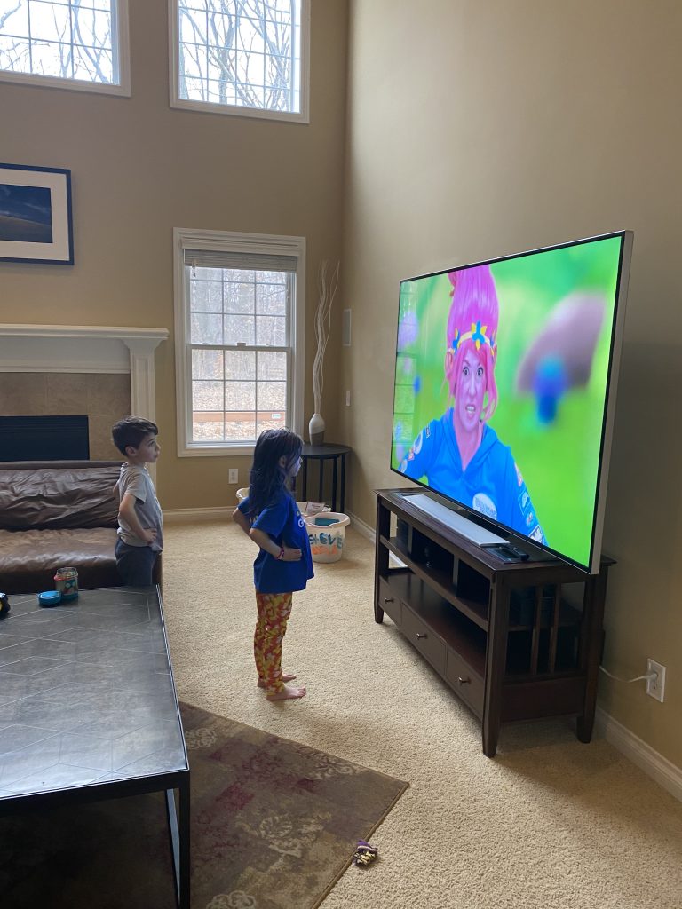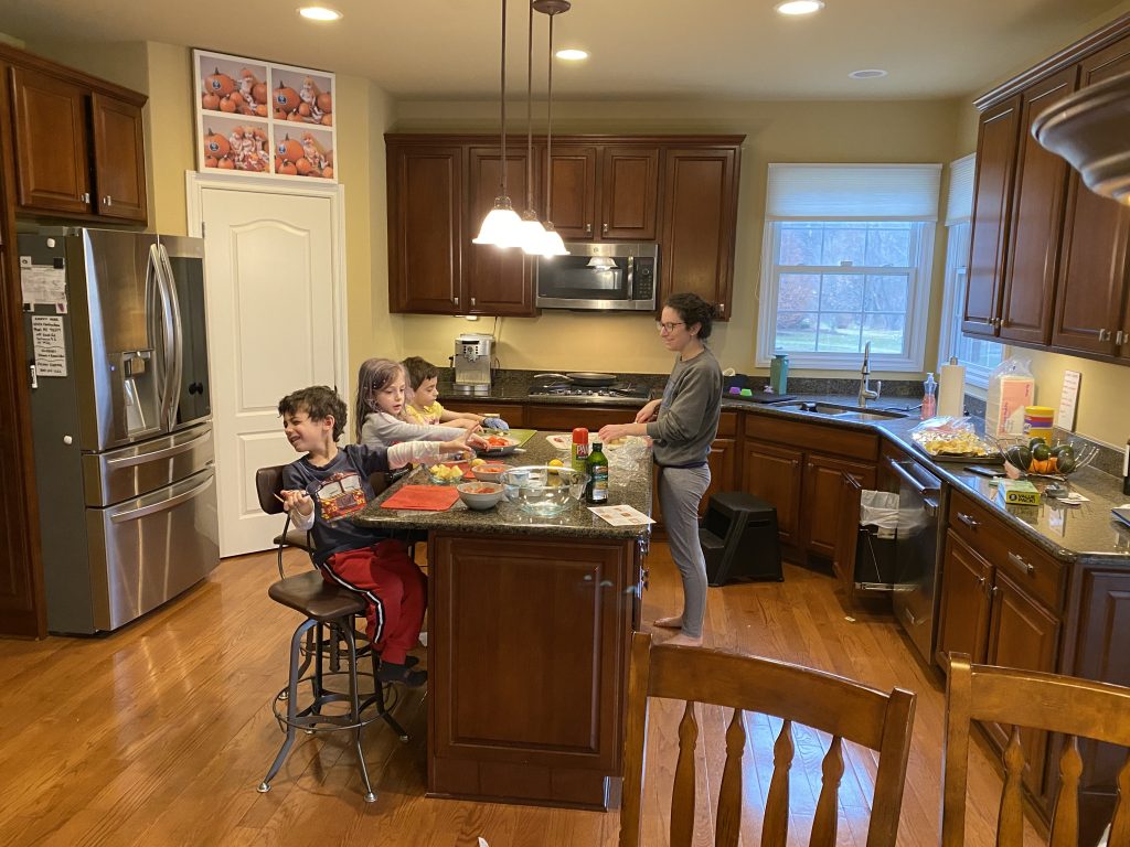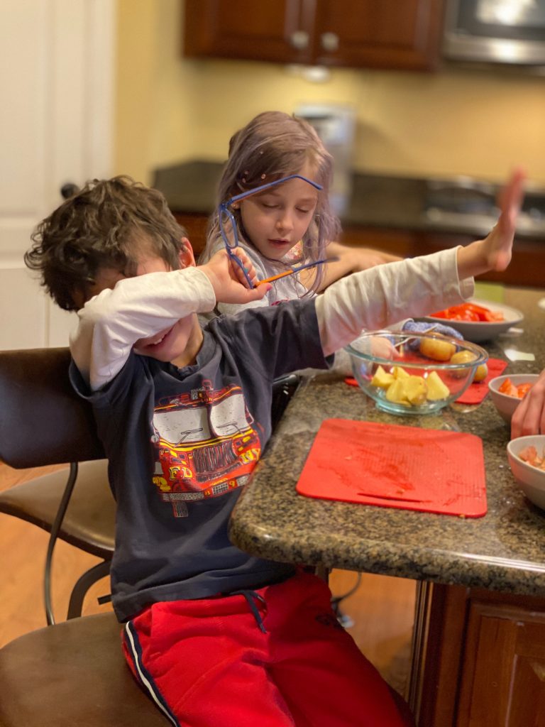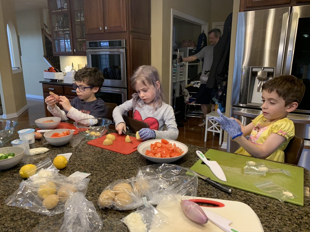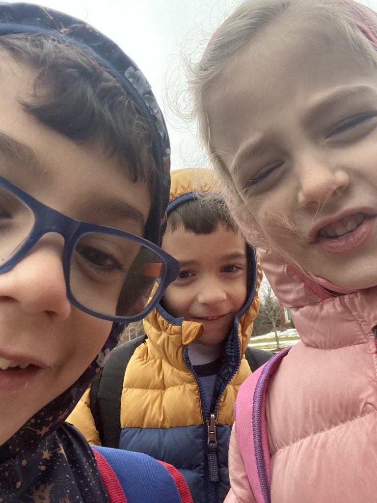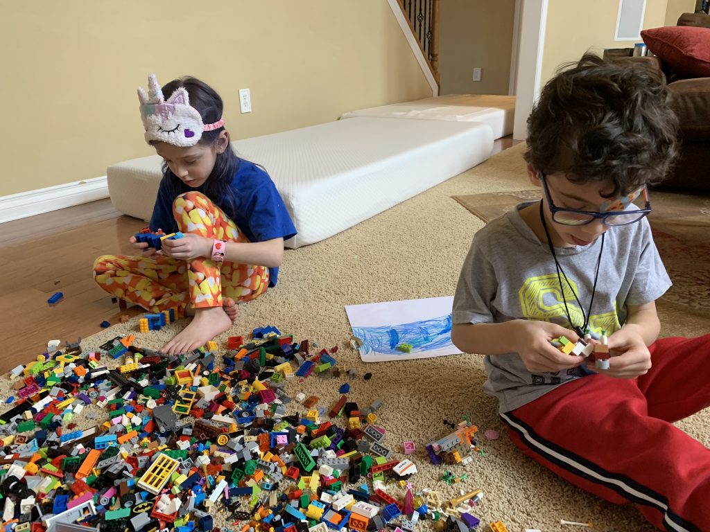 Temple Israel is doing their best to stay connected to families, including through the religious school. On Wednesday morning, the kids had a Zoom class with Ms. Amy. I was working through it but they seemed to enjoy the time, though Amaya asked why they had Sunday School on a day that wasn’t Sunday. Fair enough.