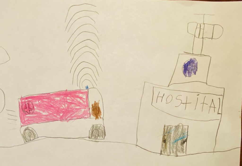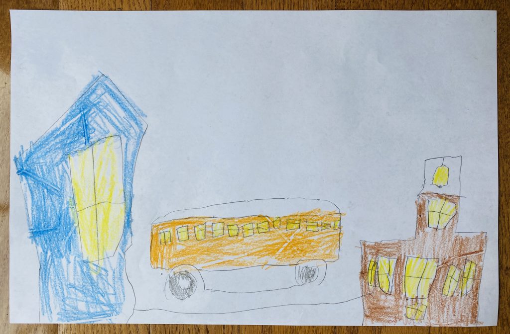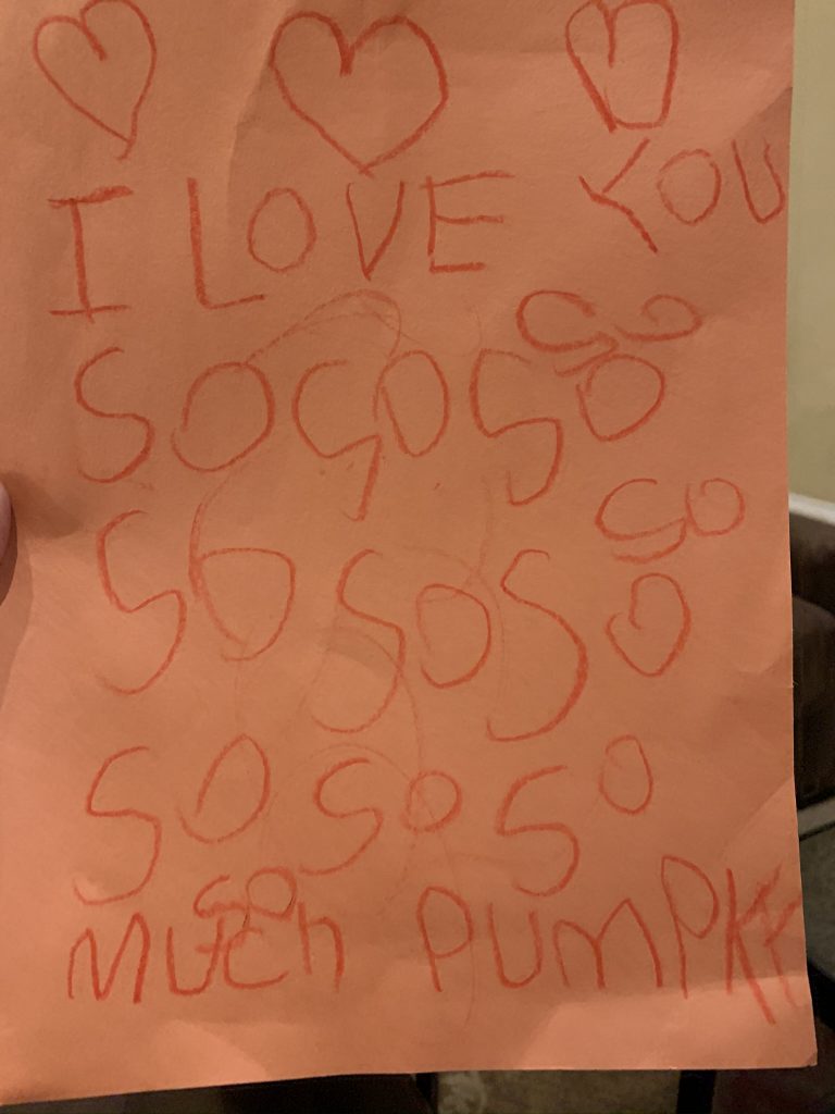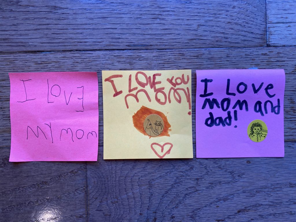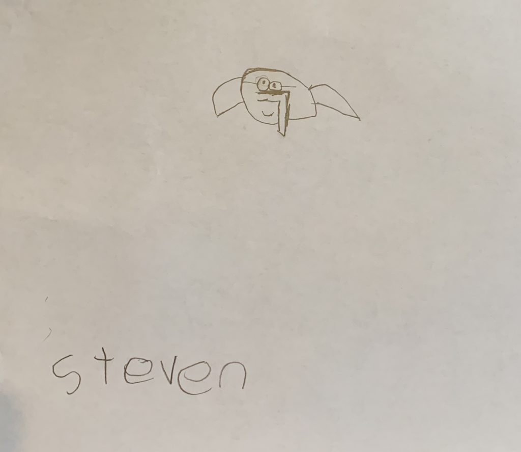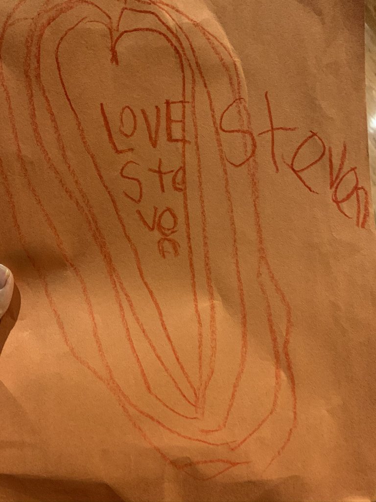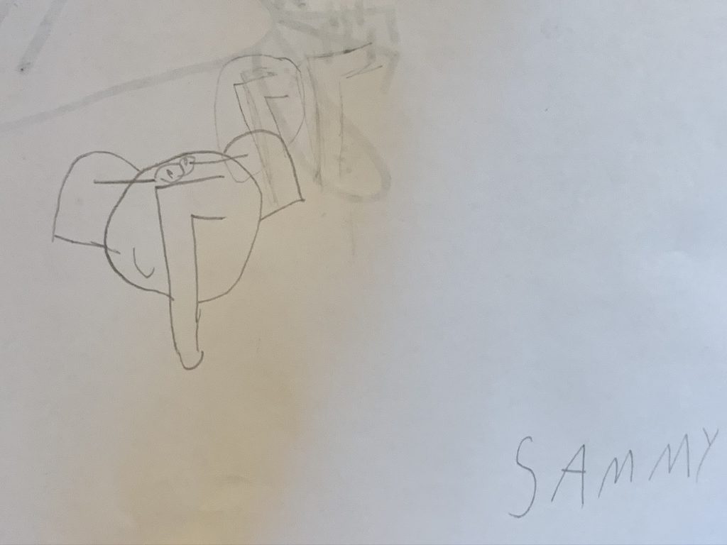 Drawings from Daddy! Steven was sweet and suggested that Sammy should get a drawing first today because only he and Amaya got Daddy Drawings on Saturday.