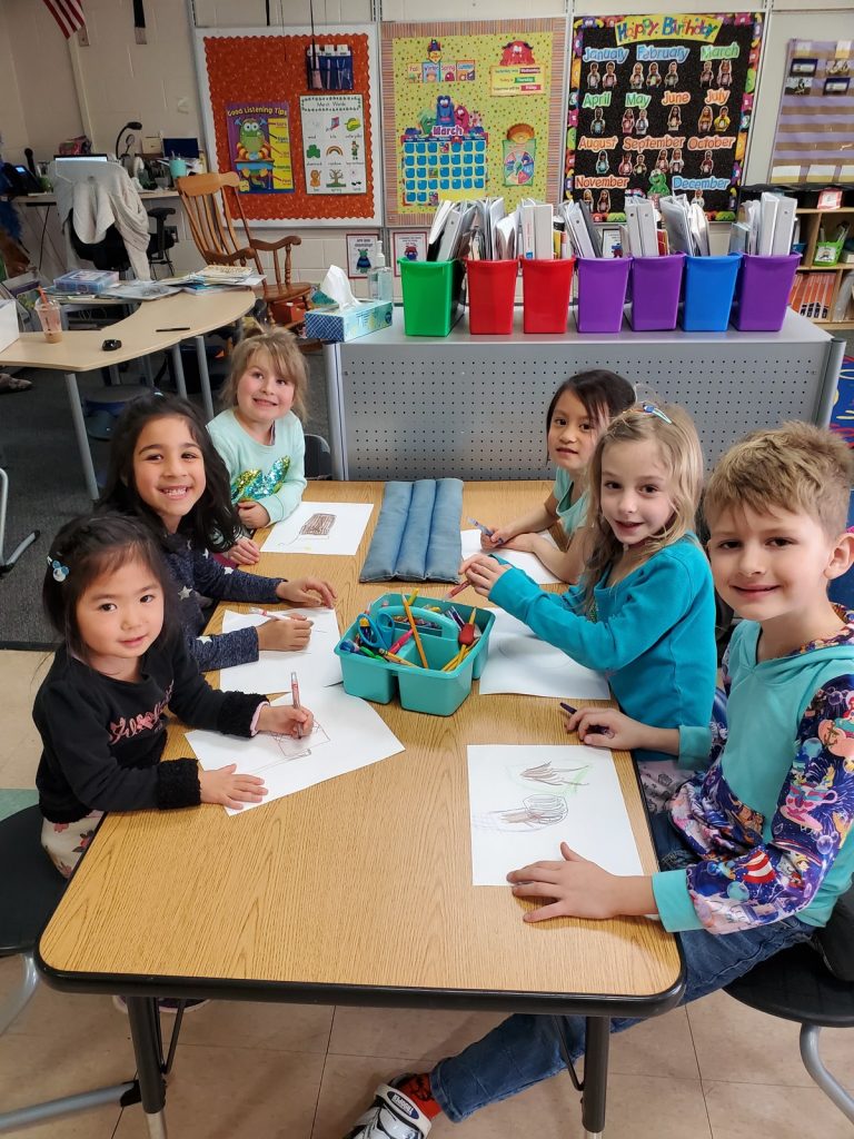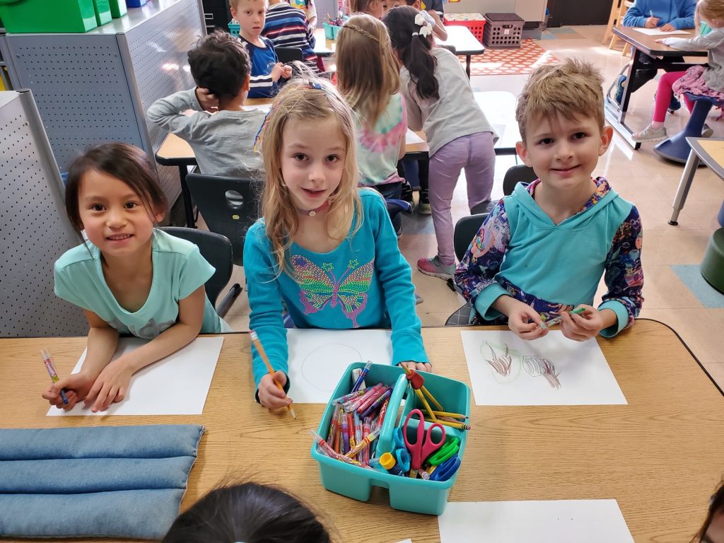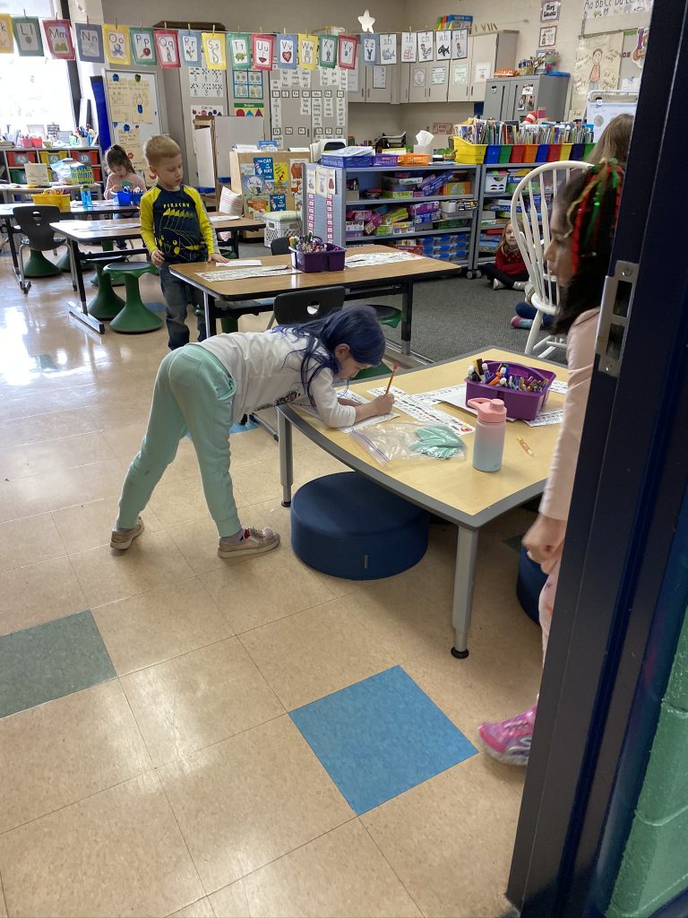 While Gabby took her class on Wednesday, I had calls (call all day, every day) so I needed to keep the kids occupied. While they rotated through eLearning, I did a pattern hunt activity shared by the boys’ art teacher.