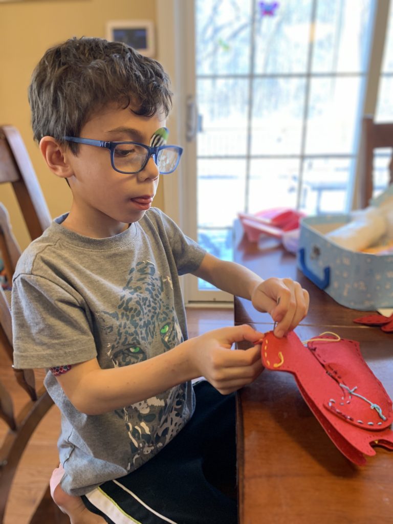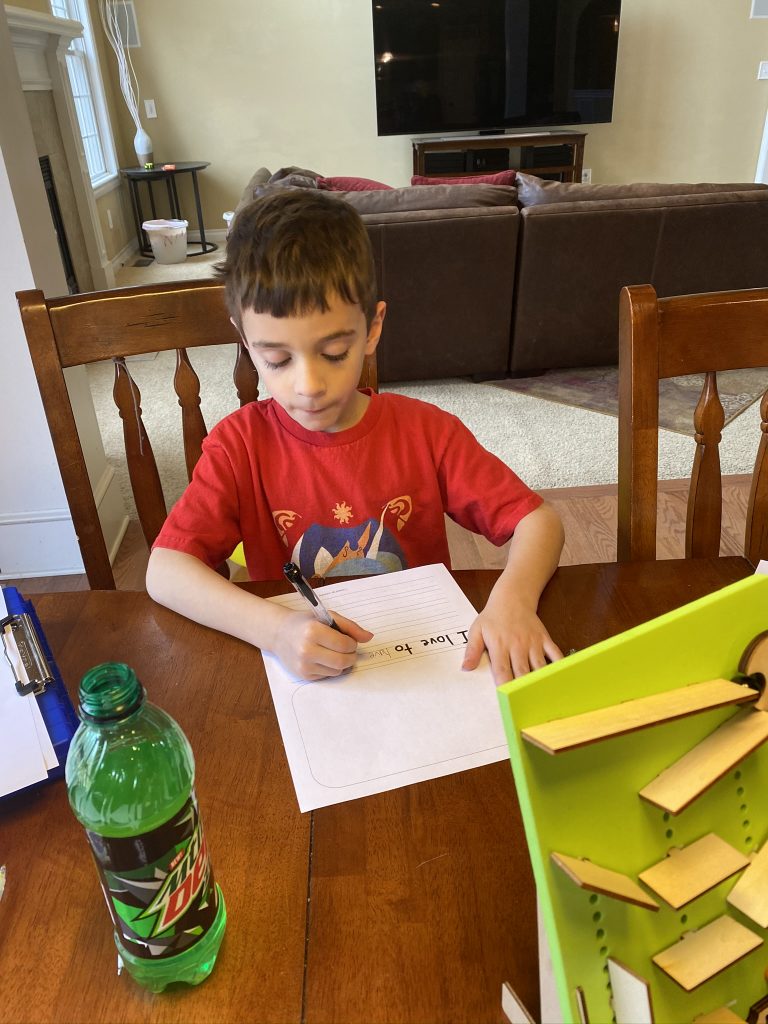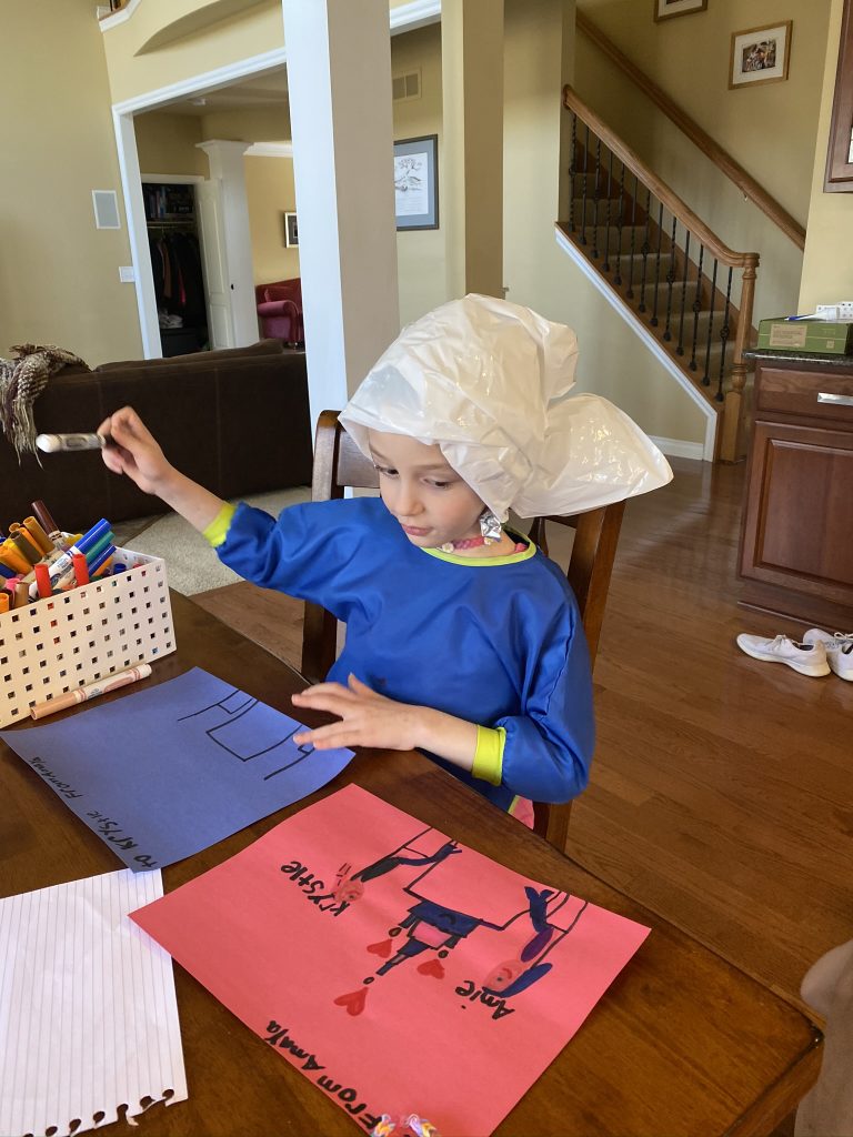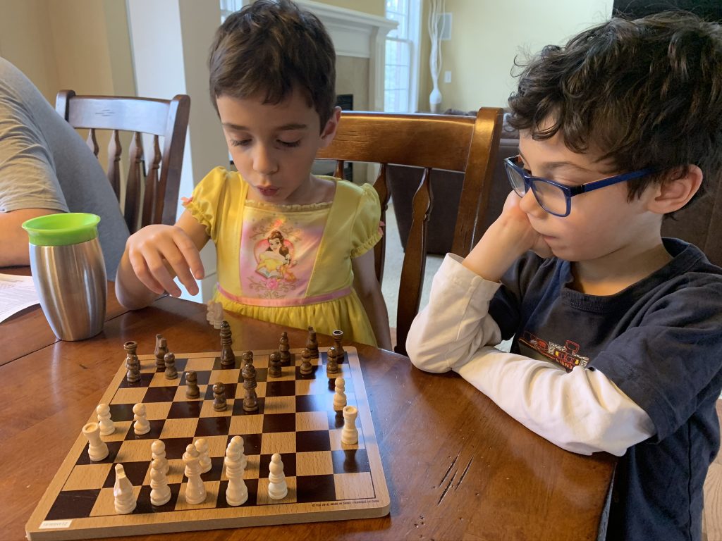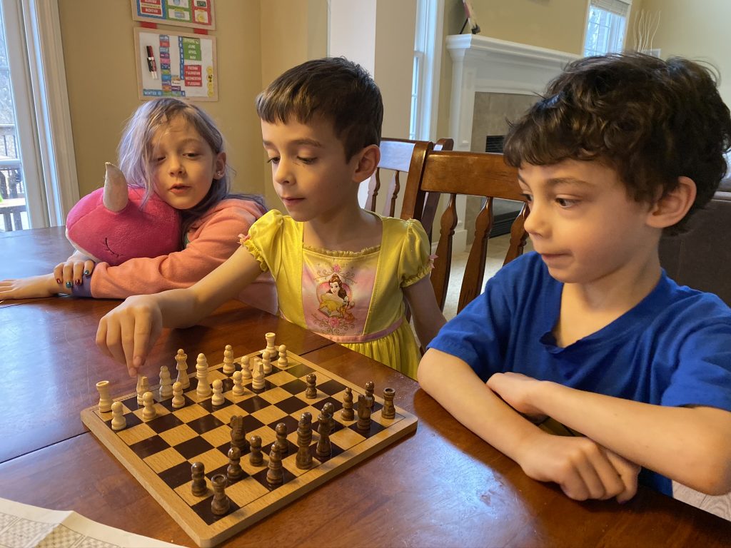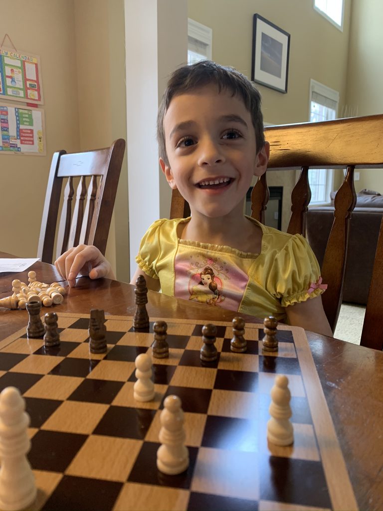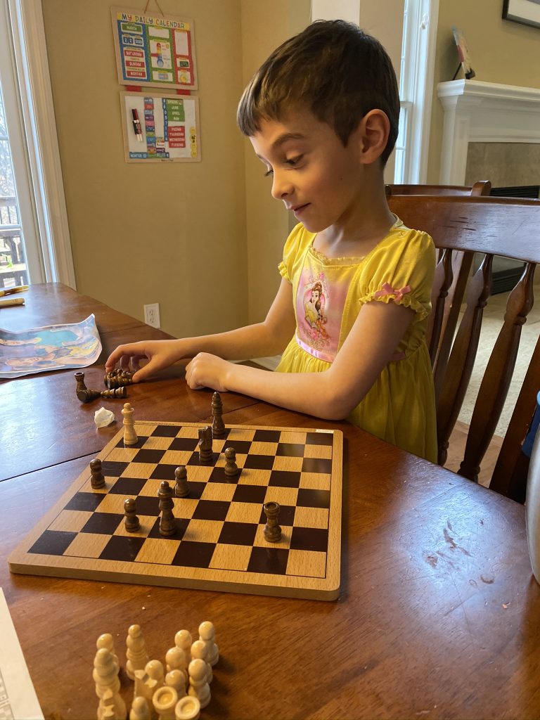 A few weeks ago, back in normal times, Sammy picked out a chess set as a stay in bed prize and this week he earned it. So he’s on his way to becoming a chess master! Jason found some online tutorials for kids and then he challenged his mom to his first game of chess.