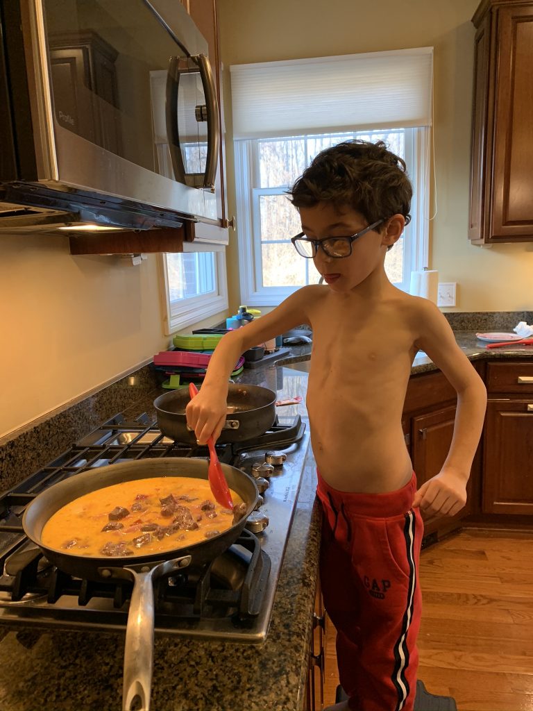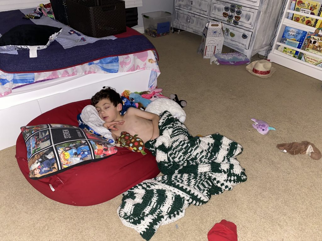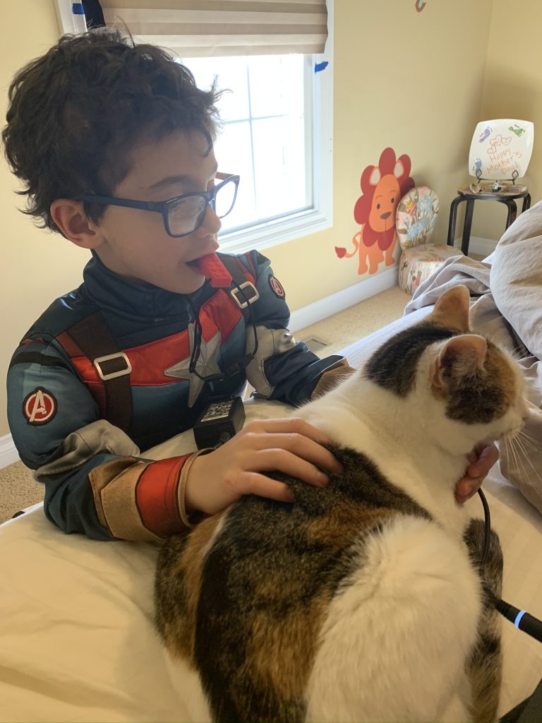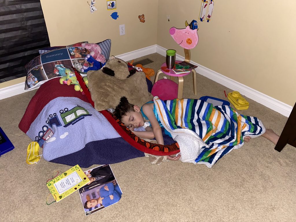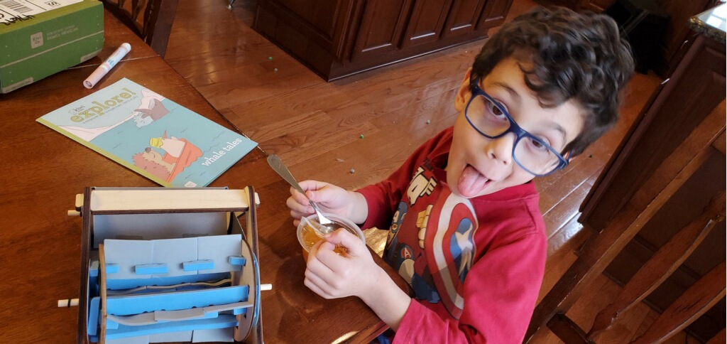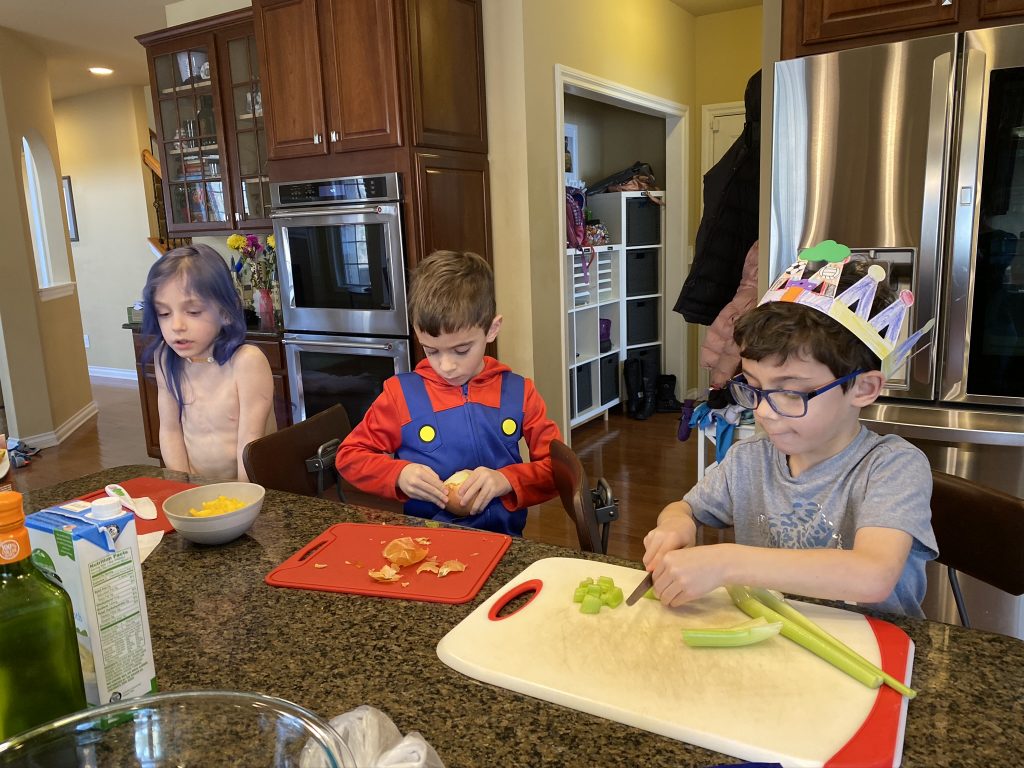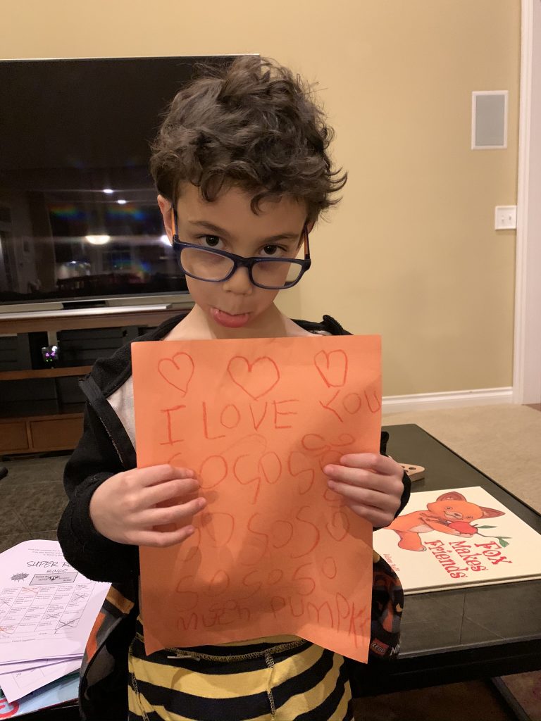 A few weeks ago, back in normal times, Sammy picked out a chess set as a stay in bed prize and this week he earned it. So he’s on his way to becoming a chess master! Jason found some online tutorials for kids and then he challenged his mom to his first game of chess.