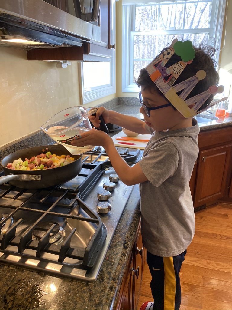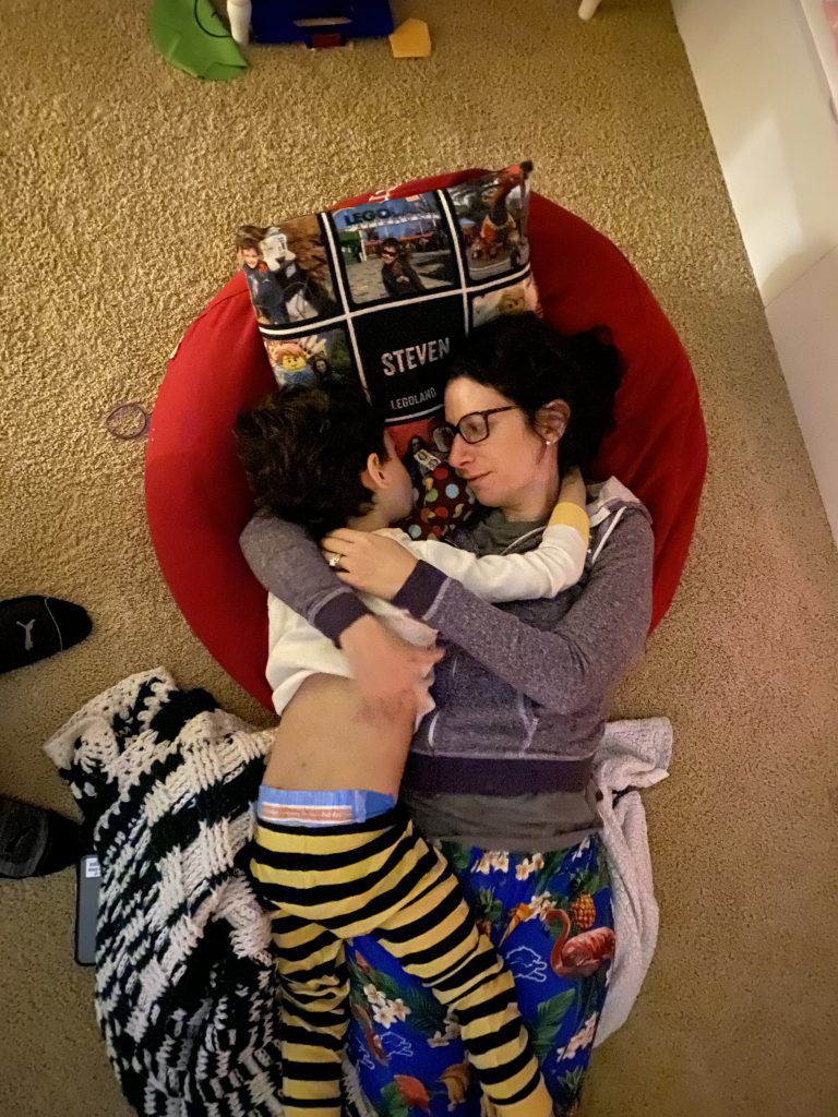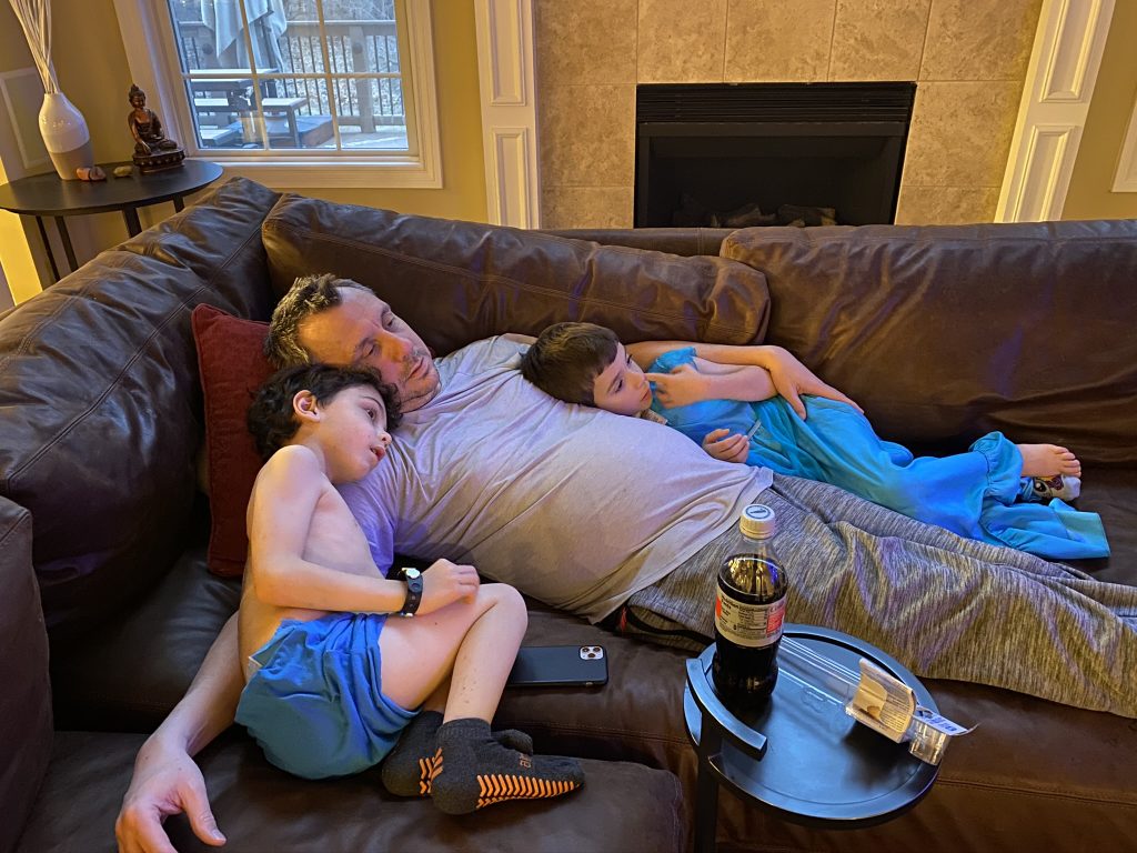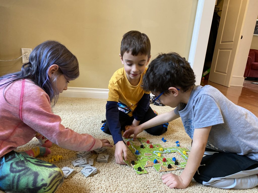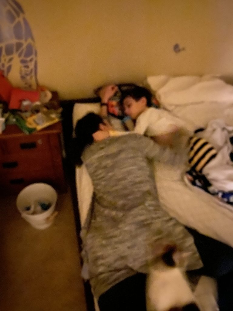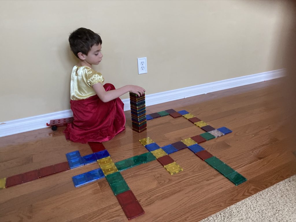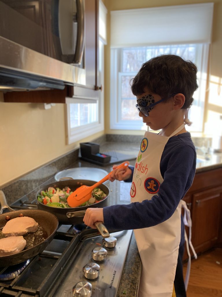 A few weeks ago, back in normal times, Sammy picked out a chess set as a stay in bed prize and this week he earned it. So he’s on his way to becoming a chess master! Jason found some online tutorials for kids and then he challenged his mom to his first game of chess.