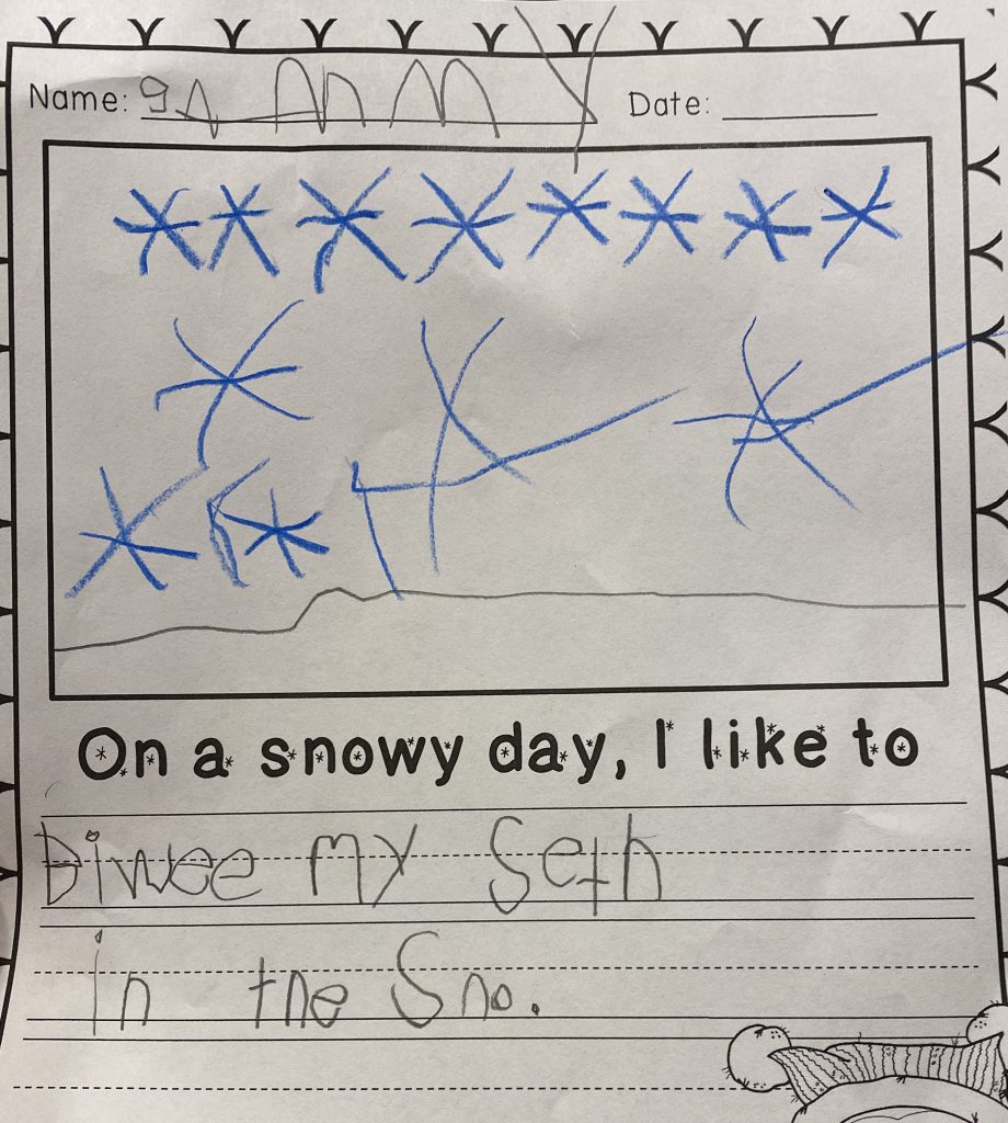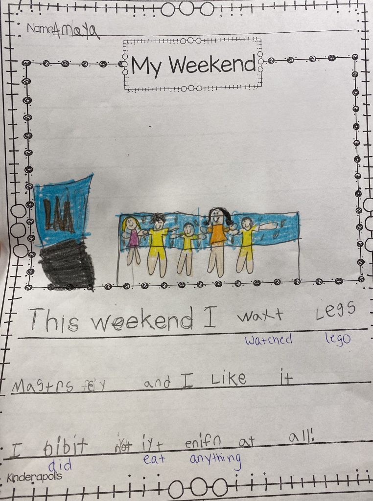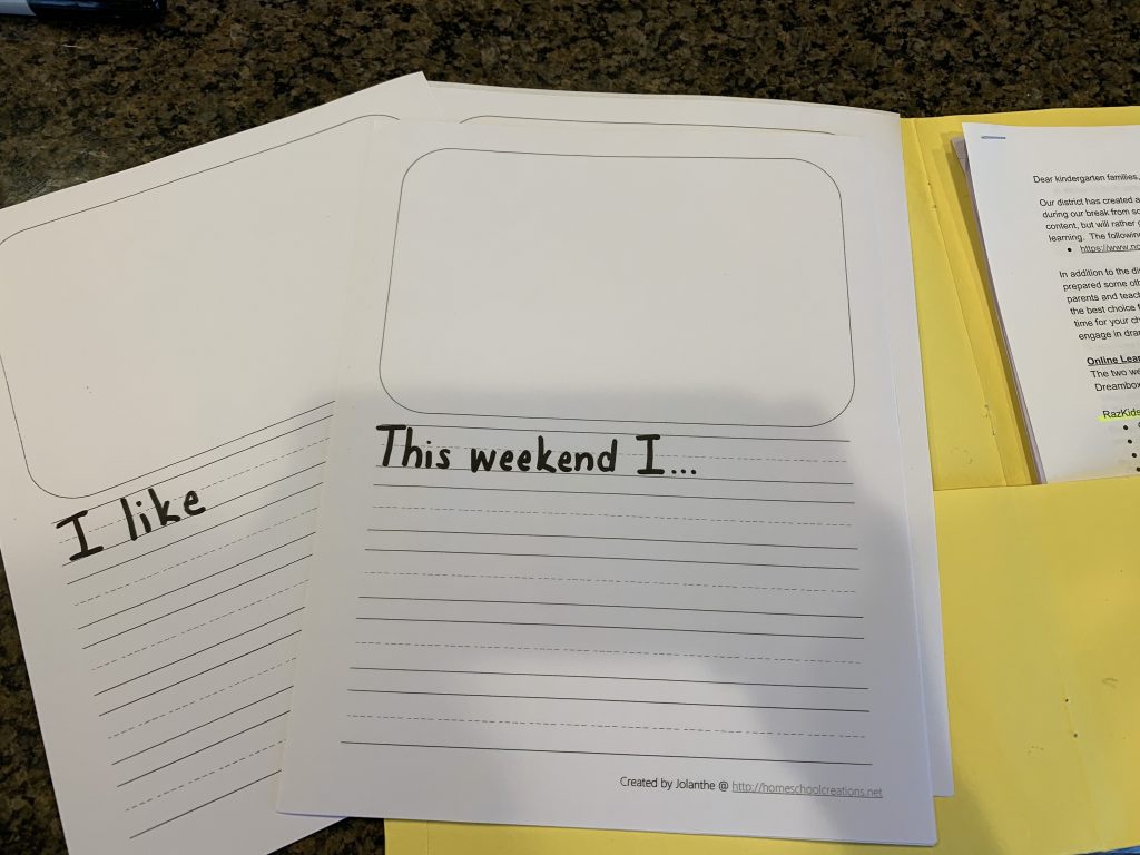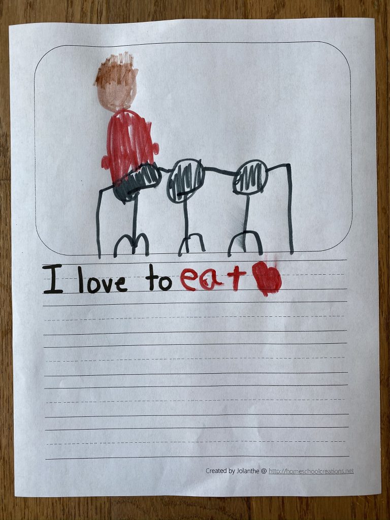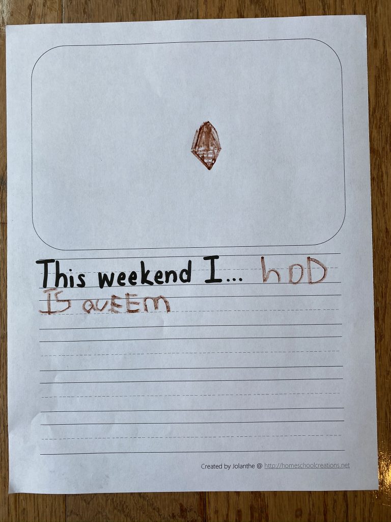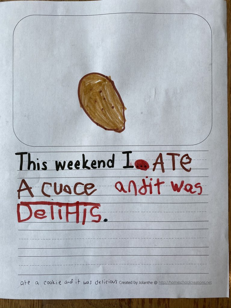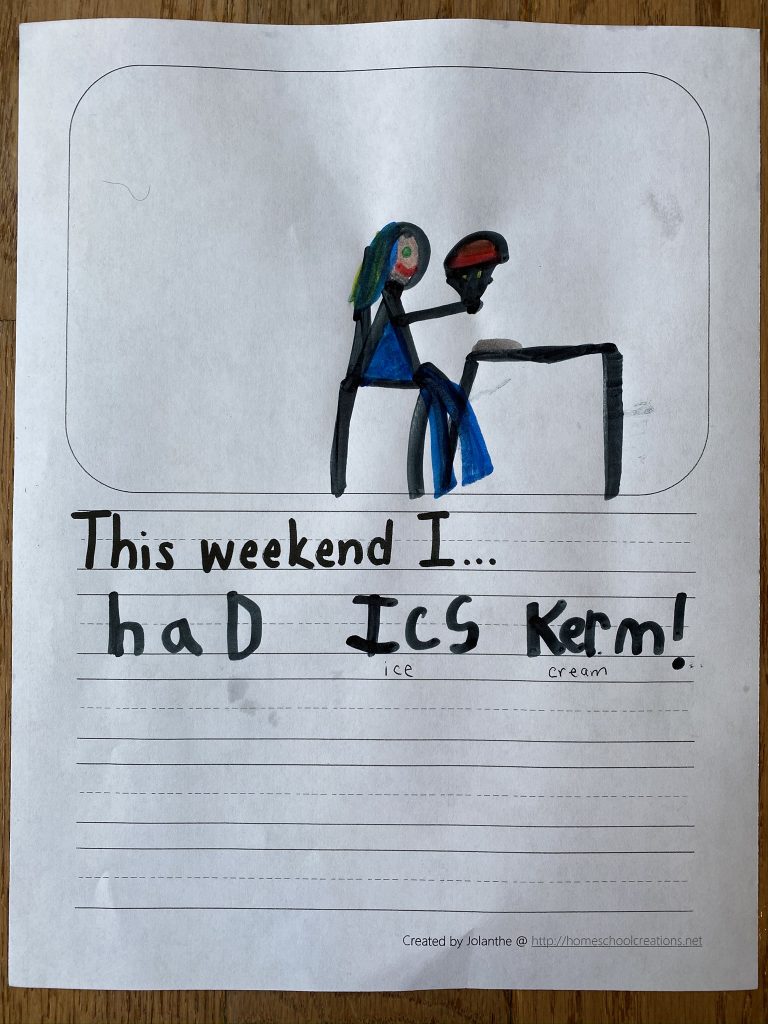 I had some important meetings on Monday so, while Gabby had her online class, Penni came by to watch the kids. They did their journaling and she had a great idea to challenge them to write four words each time.