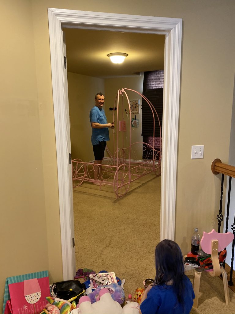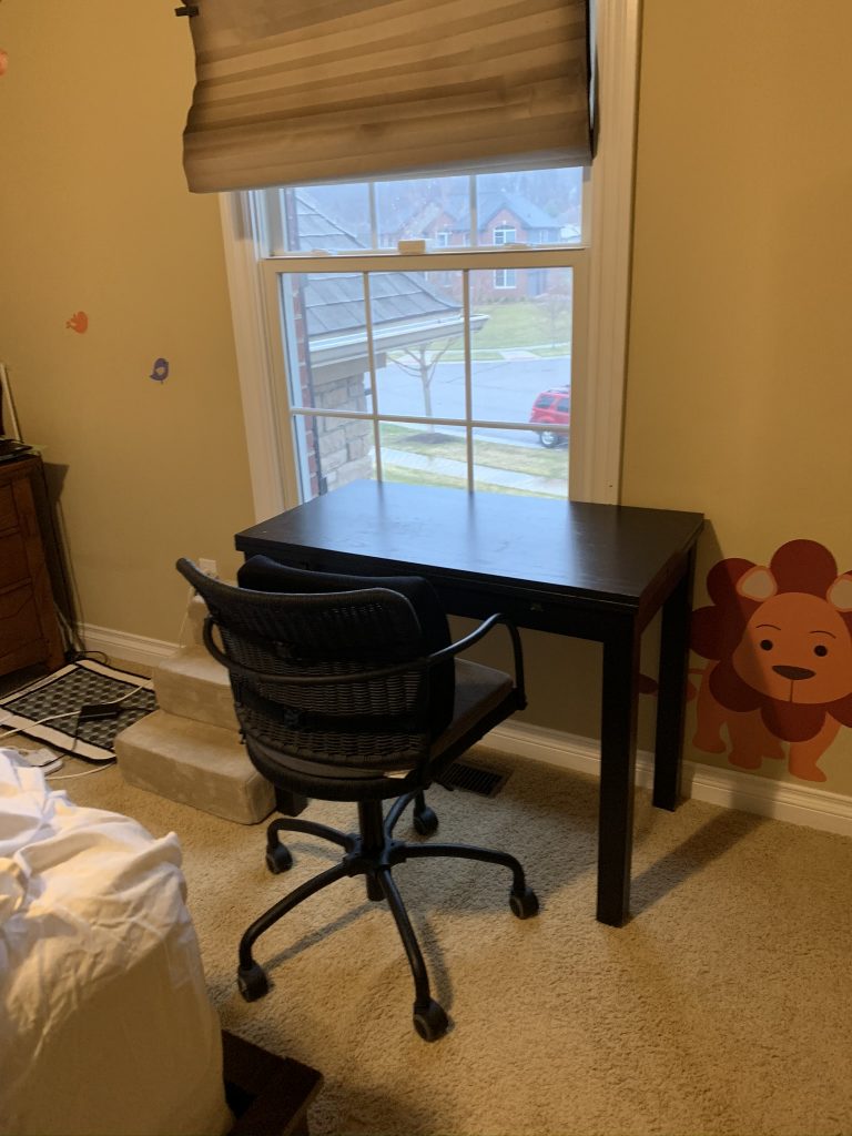 I’ve been working in the guest room and, by Thursday afternoon, was totally over working from a bed so Gabby helped me bring this desk up from the basement.