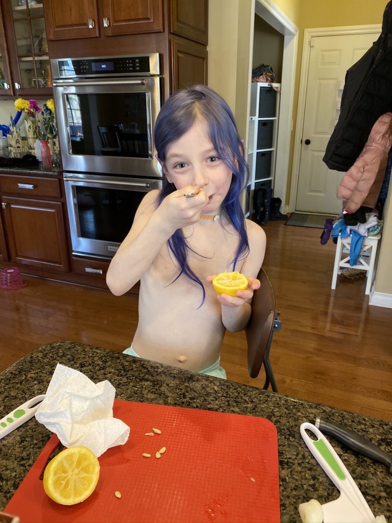 The kids and I made a delicious Greek chicken dinner.