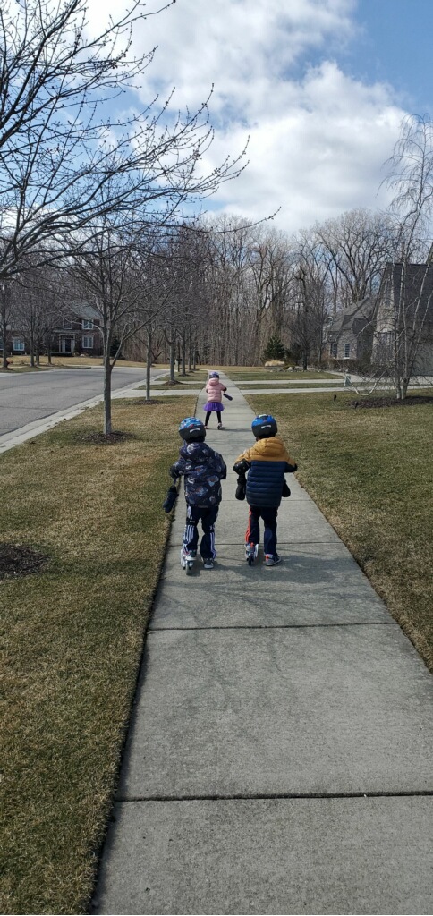 On Thursday Gabby had the great idea to take the kids to Maybury Park to walk the trails. It wasn’t terribly crowded and everyone kept their distance from one another. I’m so glad the kids got to go somewhere (safe).