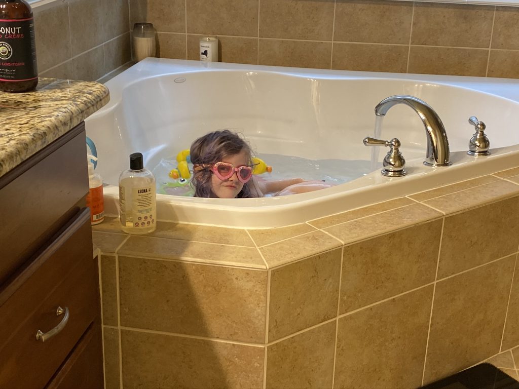 When you’re stuck at home on a rainy Saturday, it’s loooooooong baths for everyone. This girl is so sassy.
