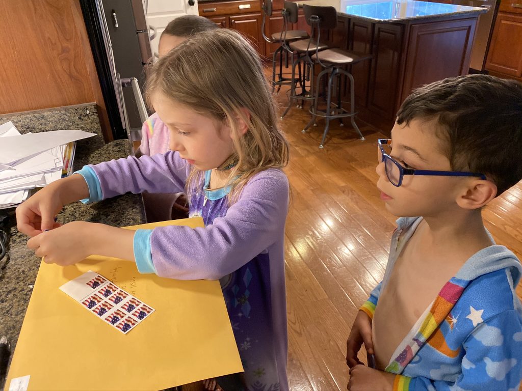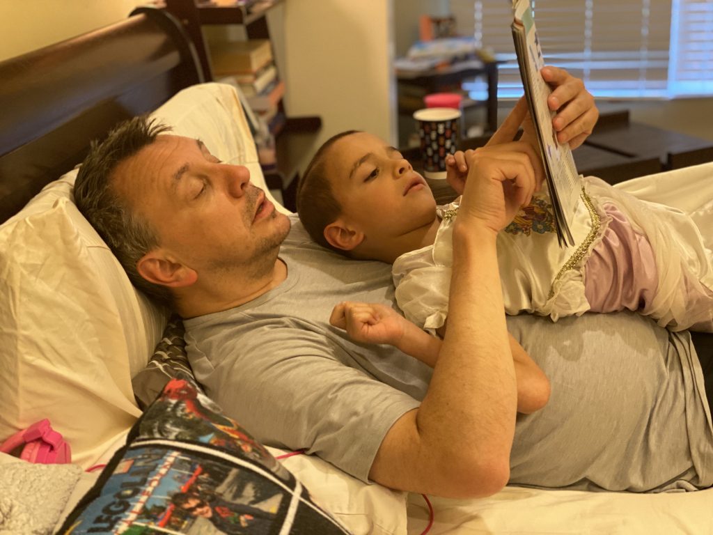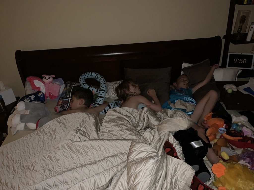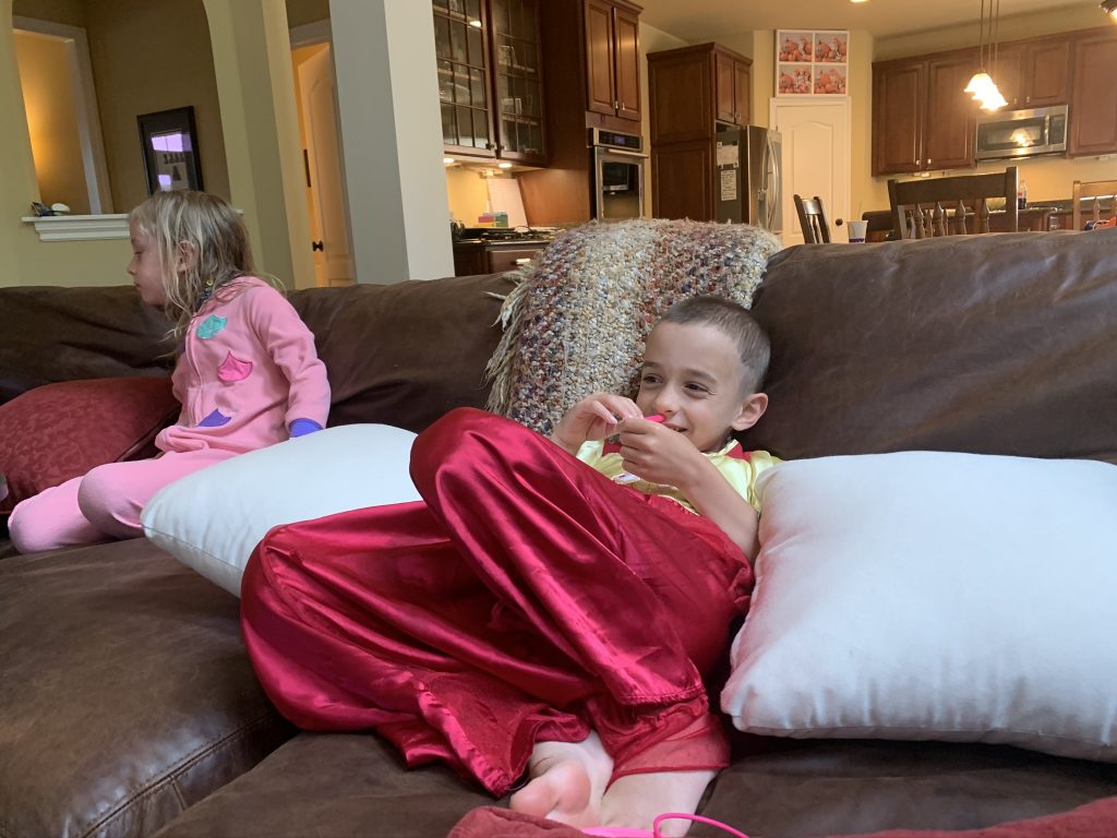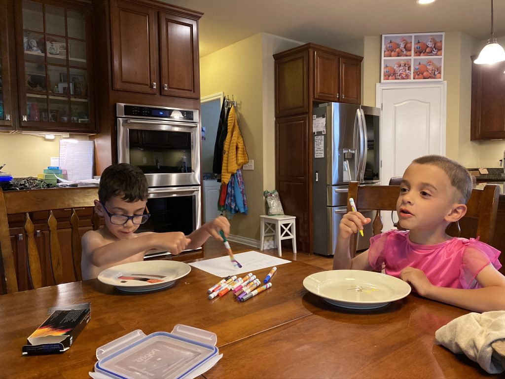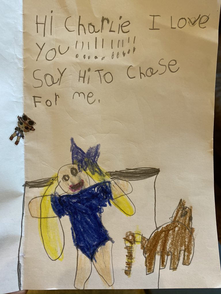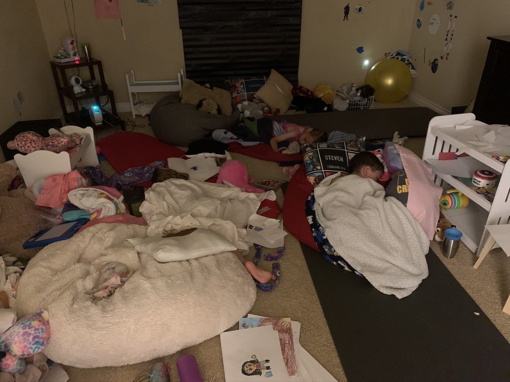 On Saturday night Amaya and Steven were up late, thick as thieves, playing games. When I told them it was time to go to sleep, Amaya started sobbing for Steven. (Even though he’d be sleeping 2 feet away from her.) They hugged it out while she cried and Steven said, “I love you, sis.” Earlier, at bedtime, they drew pictures of each other in bed under their blankets.
