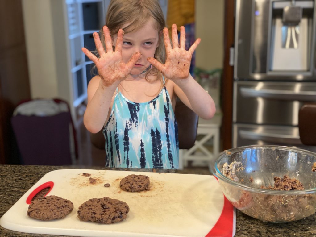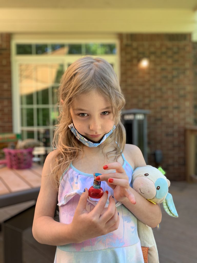 Finally, our Amaya Jean bought herself a face painting kit today and her daddy turned her into a bunny. She didn’t have any bunny ears so off she went to independently create some for herself. Our crafty girl. (That’s a carrot on her finger.)