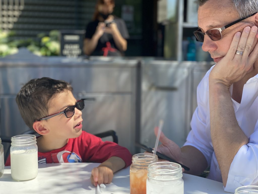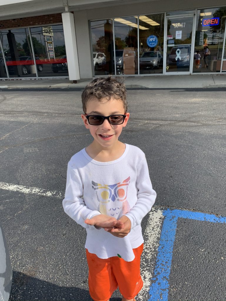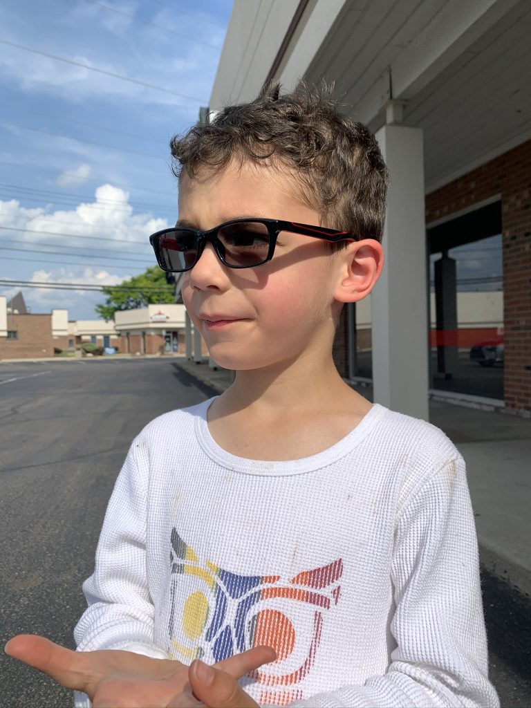 Earlier than expected, we got the call that one of Stevens pair of glasses came in! We rushed off to the optometrist to pick up his awesome new “seeing sun glasses”. It makes me so happy that Steven has sun glasses now, with two more pair to come when the other glasses are ready.