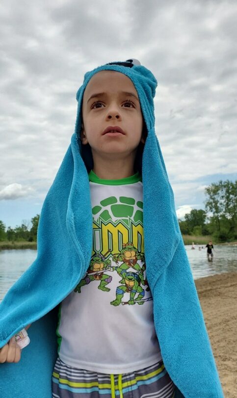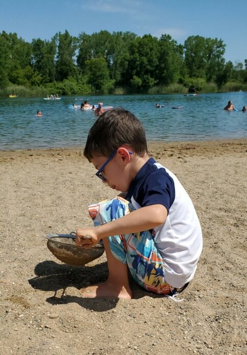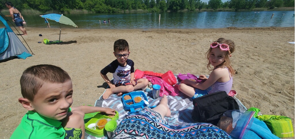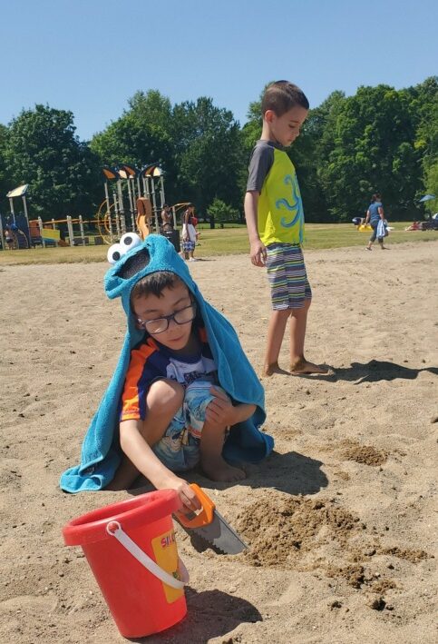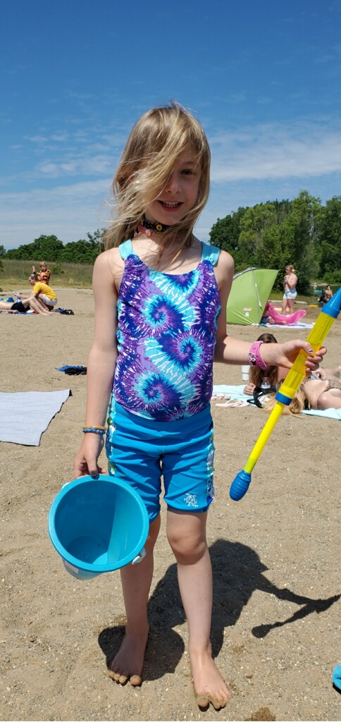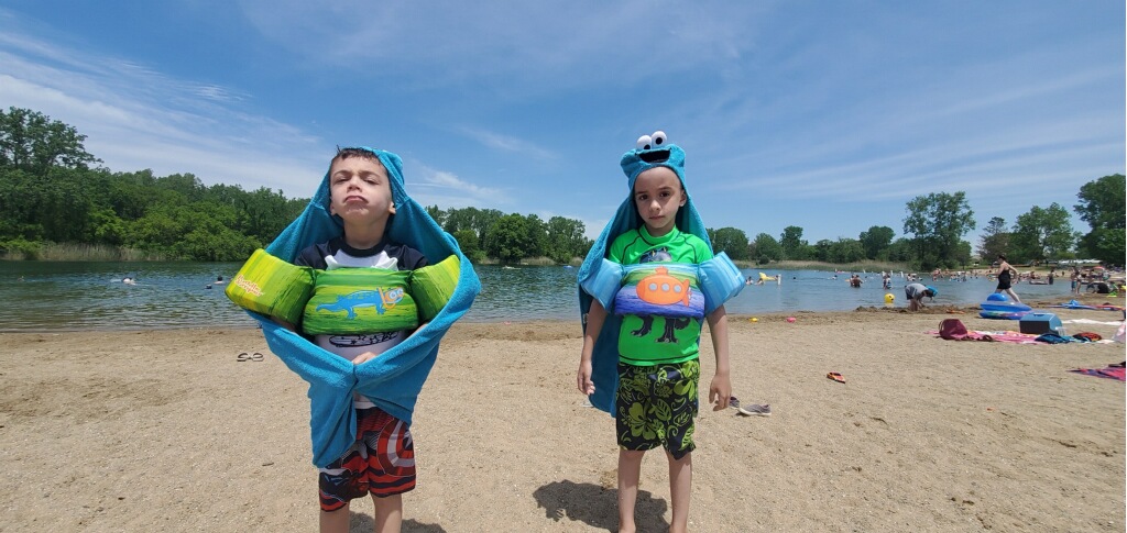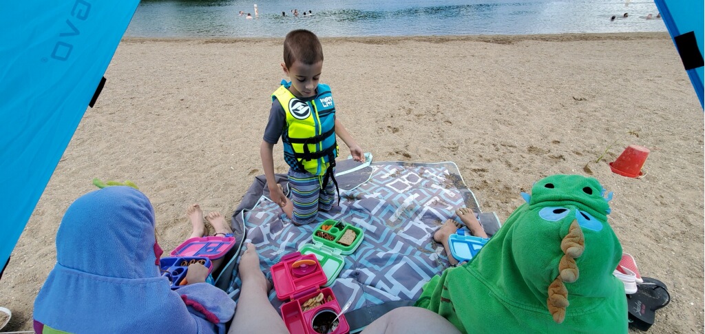 Wednesday was a beach day and the first chance to try out the new beach tent. Whoo hoo! It was a colder day, but the kids were (mostly) prepared with sweatshirts for when they came out of the water.