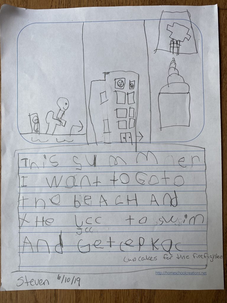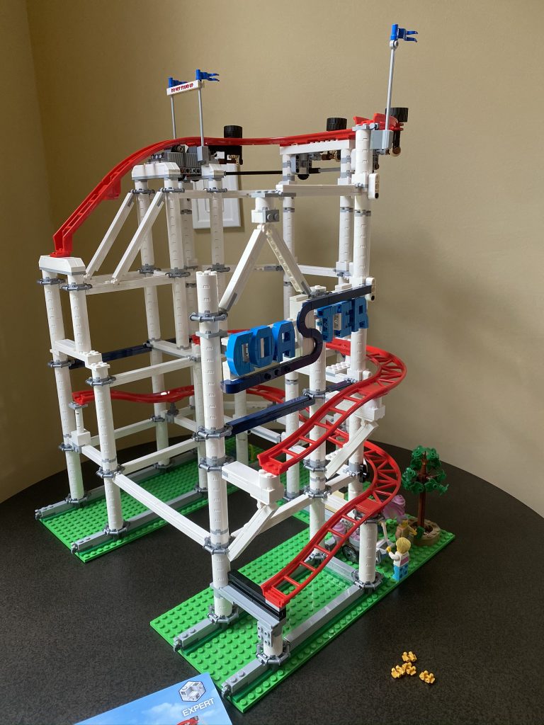 I made more progress on my roller coaster this week, with some help from Steven. It’s really cool. Lego builds take me longer in the summer because I’m not inside as often but I enjoy drawing this one out.
