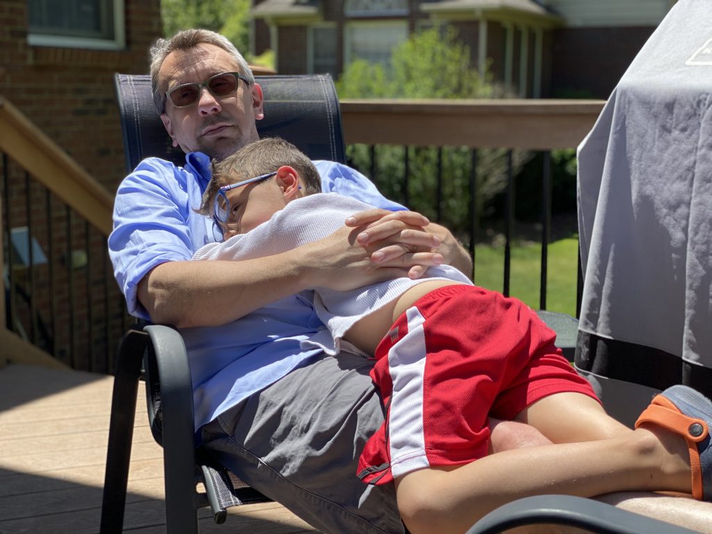 Sammy is so funny. He can be guarded so when he lets go it’s pure joy. He does these silly dances that he knows crack us up – and they do, every time.